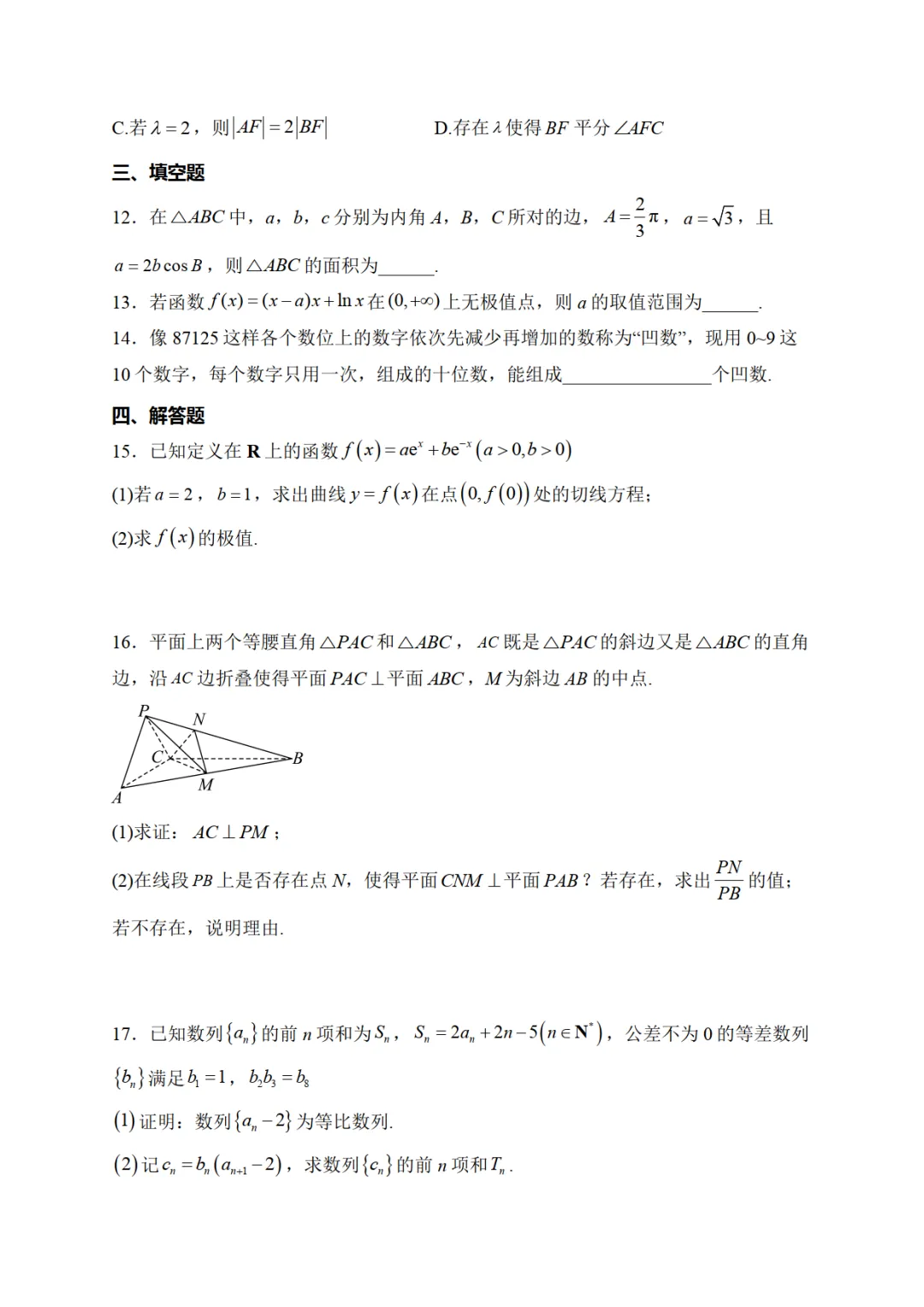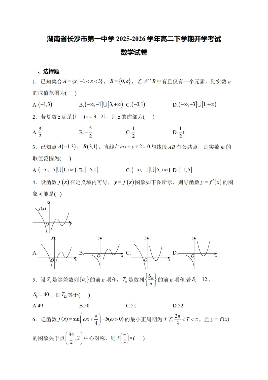 我已通过网盘分享的文件:湖南省长沙市第一中学2025-2026学年高二下学期开学考试数学试卷