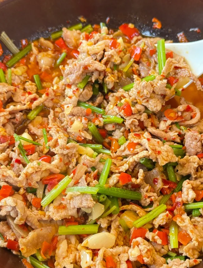 小炒肉是什么:用新鲜猪肉快炒,配以辣椒和蒜苗爆香。去哪吃:本地老牌小馆。关键提示:热气腾腾,趁热吃才过瘾。