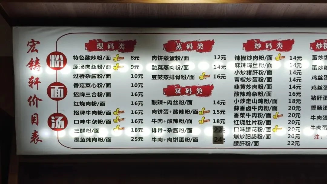 肉丝9元,牛肉16,杂酱10元,肉饼蛋过桥6元,价格并不便宜,但早晚固定时间有煎蛋相送。