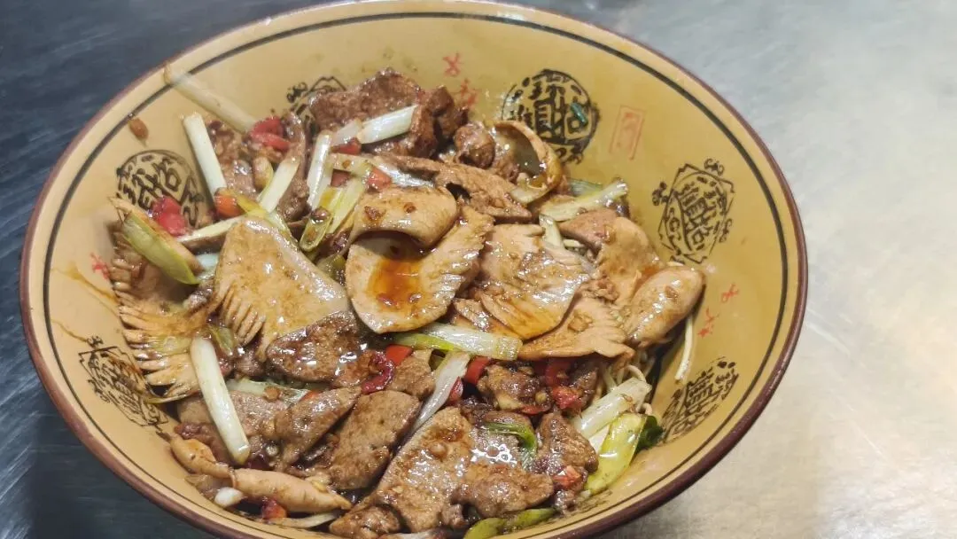 肉丝肉香不足,调味简单,火候差一些,汤中油脂香气不足;牛肉片大量多,火候适中,有牛肉香,部位偏瘦,还不错;杂酱笋子含量大,比较脆爽,肉饼蛋清爽,但含肉量不大 。