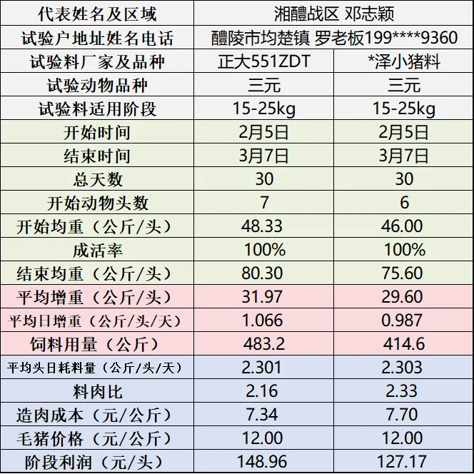 正大小猪料 养殖效益高——长沙正大醴陵市均楚镇客户551ZDT对比效果显著,已达成全场专用!