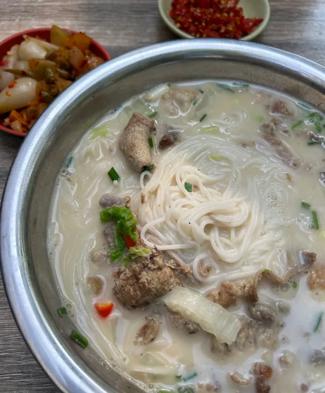 说说那碗“衡阳鱼粉”的做法:鲜鱼洗净后下锅煮汤,调料不过多,主要靠鱼骨熬出的鲜香。再放入煮透的米粉,撒上蒜末、葱花和油辣椒。简单,却能暖到胃底。这味道,是衡阳人从早到晚都离不开的。