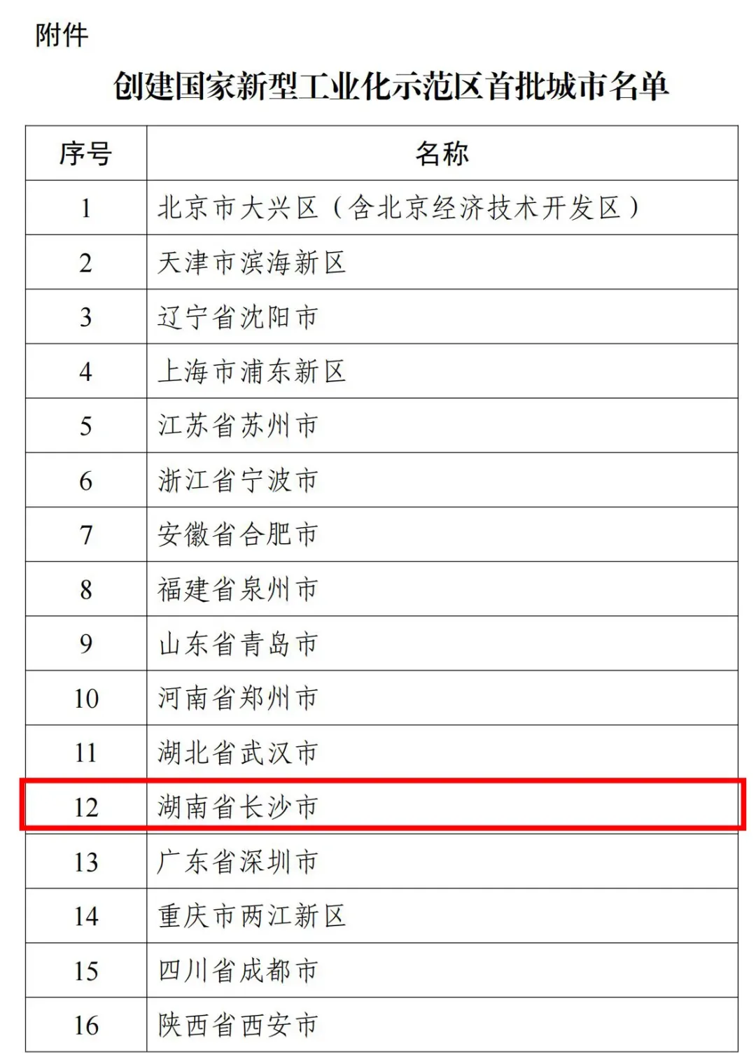 近日,工业和信息化部公布创建国家新型工业化示范区首批城市名单,我省长沙市入选。具体的通知内容和名单如下: