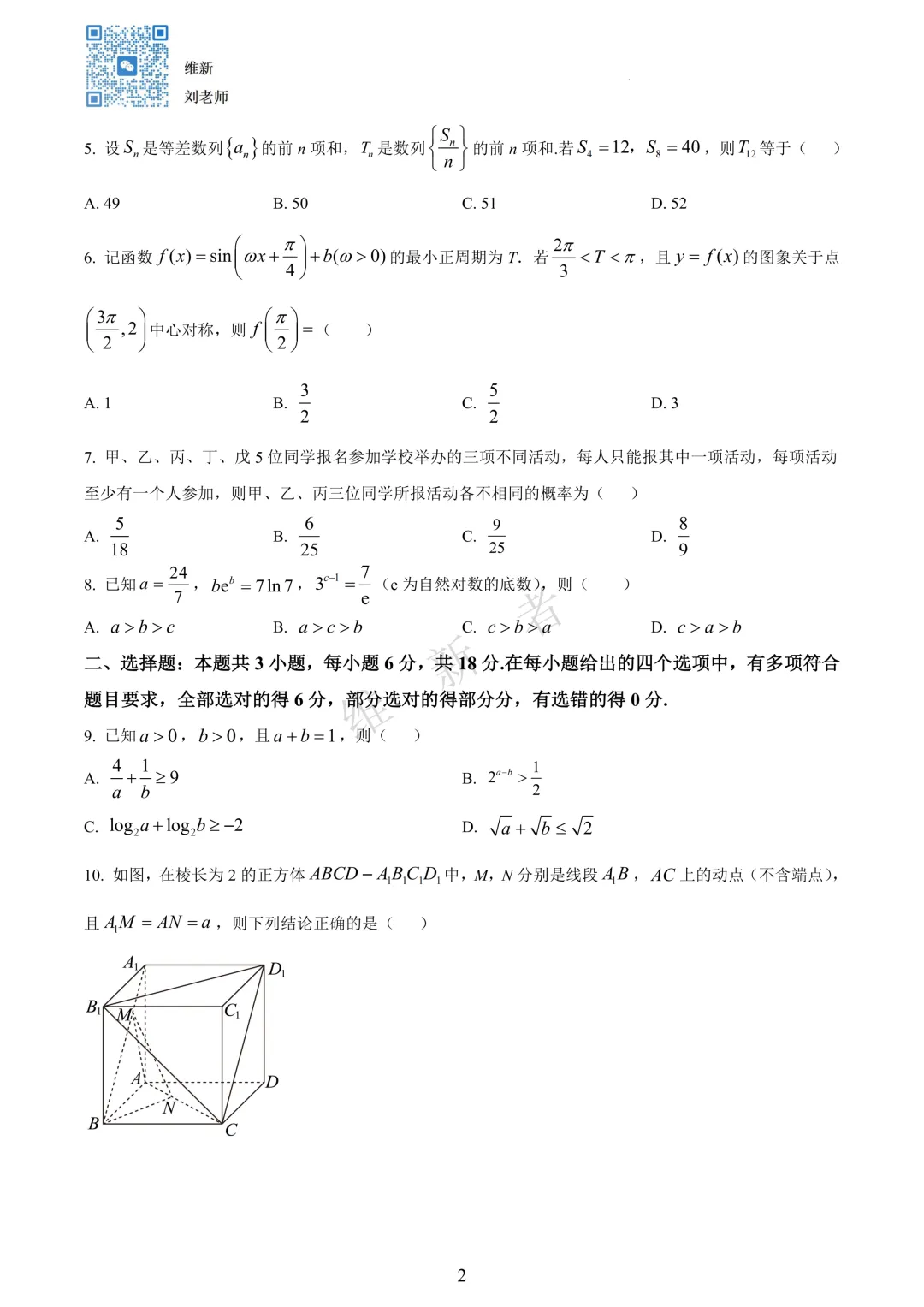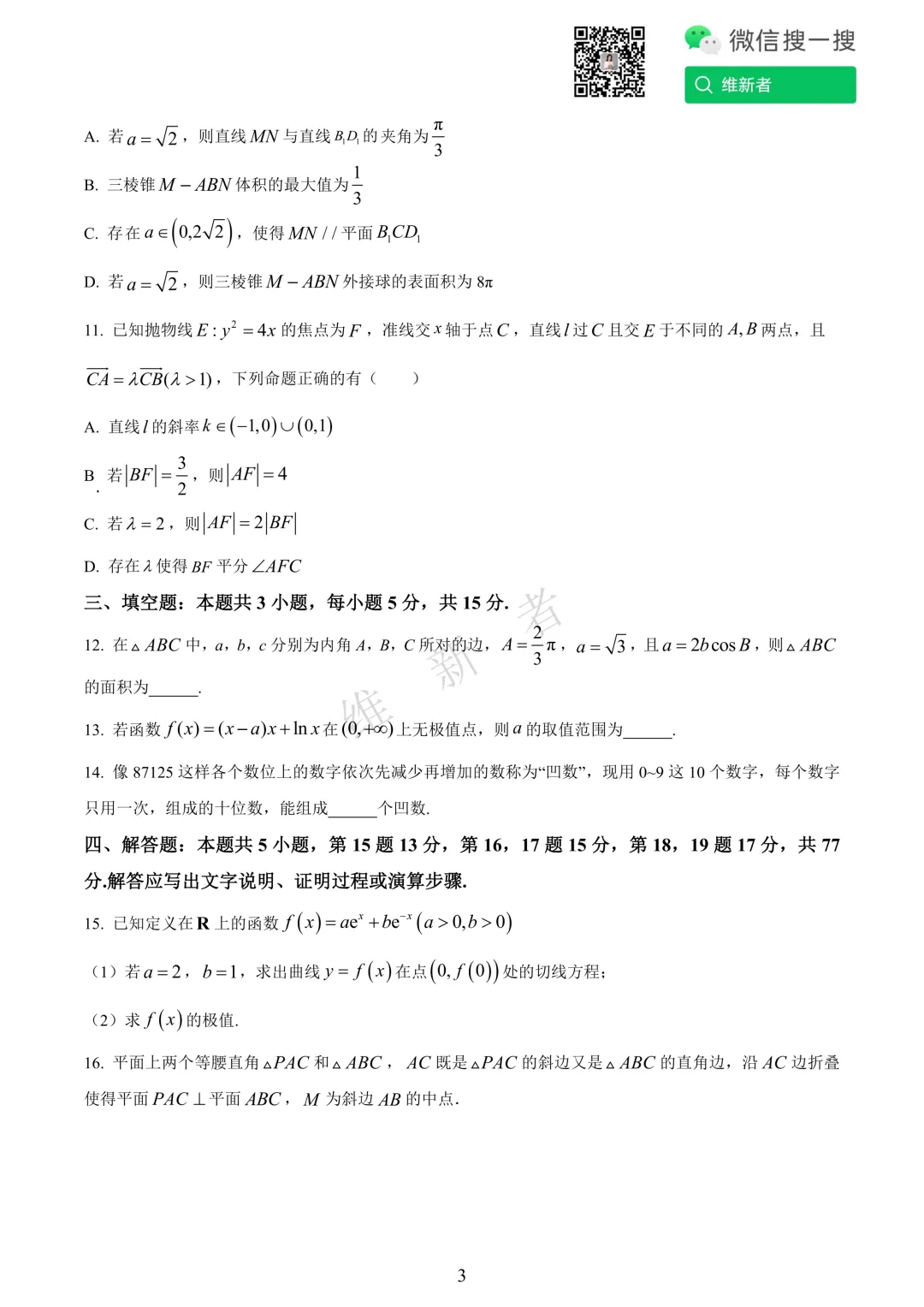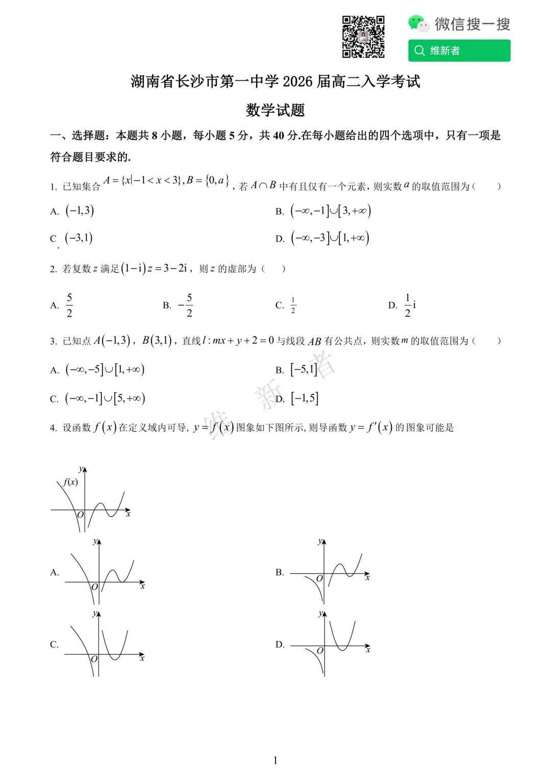 维新者致力于收集和整理各大名校试题,帮助您省心省力获取各类优质的试卷与教辅资源。我们这次带来的是湖南省长沙市第一中学2026届高二入学考试数学试题及答案,希望能够有助于您孩子的学习。