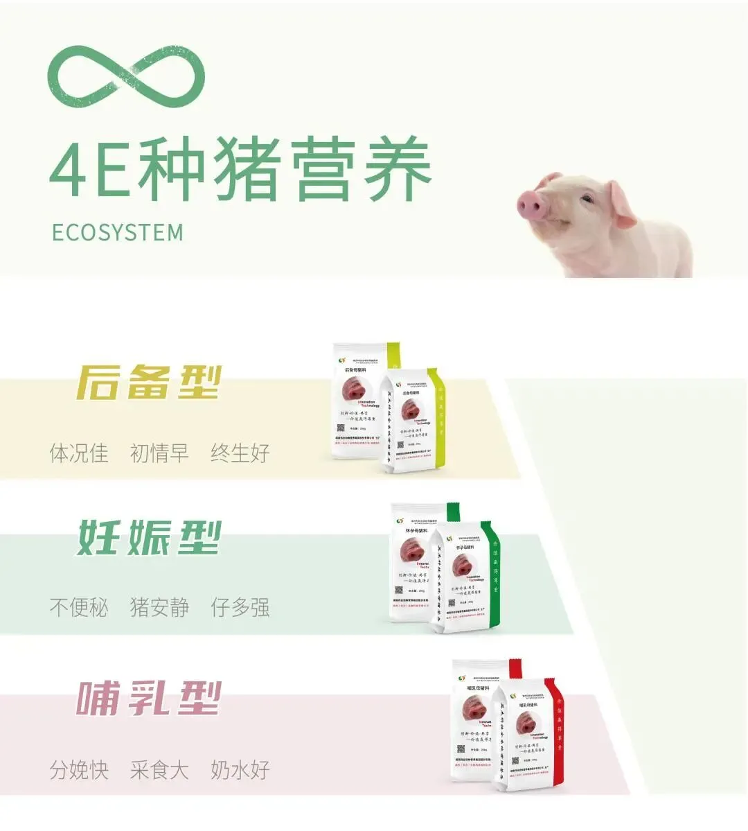 公司独创“4E种猪营养体系”为核心,通过创新配方技术,科学适配种猪不同生理阶段营养需求。该体系不仅能显著提升种猪繁殖性能、PSY指标、健仔率与成活率,实现节粮增效,还能充分利用地源性饲粮,减少豆粕用量,推广绿色无抗养殖模式,有效降低养殖成本与环保压力,为全国规模猪场提供一站式高效养殖解决方案。