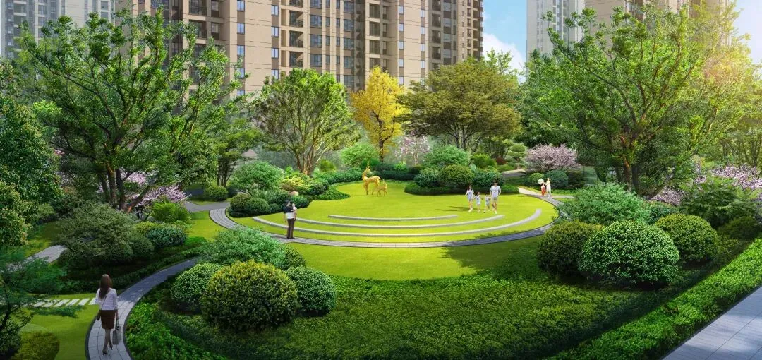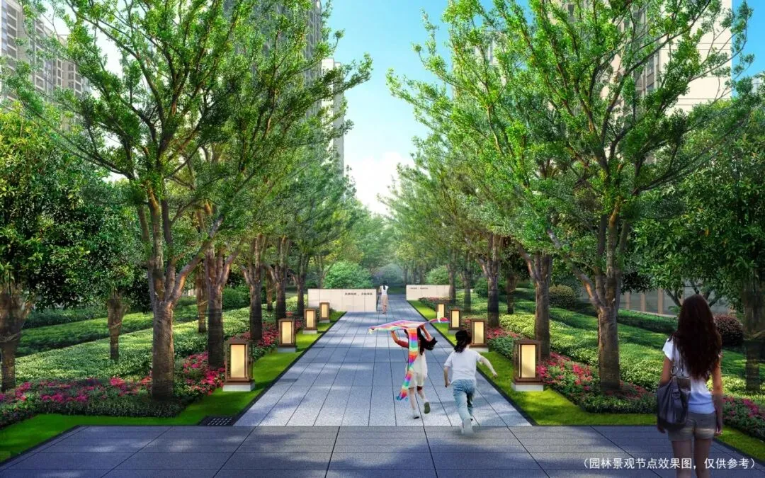 “一轴一环两序四园”公园式园林布局,全冠移植超70种植物,逾百棵树龄50+树种,近30株樱花树聚集成林…..四季花木繁茂,家家推窗即景,用一座长期主义园林托起一家生活的长青。