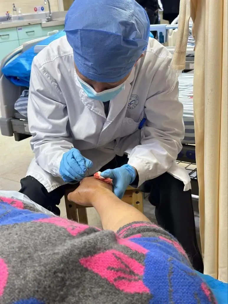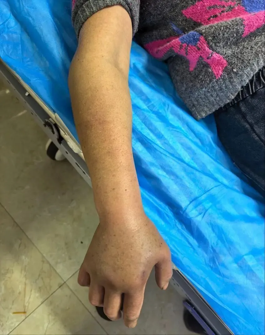 经检查发现,患者被咬伤右手手背后,出现疼痛、流血、肿胀、淤青,触痛、压痛明显,肢体活动受限。急诊科陈颖医生迅速判断为短尾蝮蛇咬伤,立即为患者行伤口切开引流,排出毒液、淤血,快速消肿、减轻压力,并及时注射抗蝮蛇毒血清,同时给予对症支持治疗。目前患者病情稳定,正在康复中。