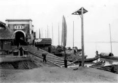 在整理完长沙城老九门后,对清末长沙新开的四个城门——福星门、太平街的太平门、古潭州街口的学宫门、经武门,他们的位置又在哪里呢。找到一张长沙城历史发展图。将楚汉城、唐城、明清年代城的大概位置显示在一张图上。清末新开的三个门都临湘江,可以看出,随着城市的发展,城市对物流的需求旺盛,已有的城门不能满足需要时,就要新开一些城门。与这些城门相对的就是出了城门就是码头,河边有台阶方便人员上/下岸。这一张图上,北面在湘春门和新开门之间,有一个“老新开门”,说明在“新开门”之前,城北已经多开了一个门了。这里边上还有一个“宋云阳门”,宋代的长沙城,在这里有一个门“云阳门”。在民国初年拆除城墙的时候,在湘春路挖出了宋代云阳门匾额(门额上的落款没有看出来是什么)。说明当时此门位置在此附近。清末经太平天国运动,朝廷发现八旗和绿营军都指望不上了。甲午战争,李鸿章的淮军也被搞得七零八落,就学习西方的练军经验,由袁世凯在天津小站练新军。各省也有一些新军。湖南省的新军训练的时候,从驻地到训练场要出入城(未找到具体位置的资料。)当时最近出入城两个城门小吴门和湘春门。大头兵觉得不方便,就直接在城墙上开了个门,即经武门,门名取“整军经武”之意。查百度长沙的城门,后来还增加了一个“碧沙门”,我没有找到这个门的资料,估计是笔误了。有一位研究长沙城门的学者陈先枢,出版了他的研究成果,大家有兴趣可以找他的《老照片中的长沙》等书一读。福星门、学宫门、太平门,则是根据门所在的街道,特色地名命名了。学宫门附近的长沙府文庙,学宫门因此文庙又名学宫而得名。照片由 Swire 1907年拍摄。现在长沙府文庙只有一个石牌坊留存。上面的“道冠古今”讲明了它的来历,它成为附近小朋友小时候的记忆。它已成为长沙市文物保护单位。在写文章的时候找资料,找到了另一些长沙城门相关的照片。潮宗门的挑水工苦力,为长沙城里的居民挑湘江水饮用。那个时候工业还没有起来,江水没有污染,将水里在的泥沙沉淀后,就可以直接作为食水。在1970年代,我的家乡江苏苏北有的沿河乡镇,食水还是直接从河里挑水的。这一张照片上,江面小舟桅杆林立,可以看出湘江上的物流很忙。照片来源不详,有说是1900年拍的,有说是1920年拍的。大西门,出门就是石阶。照片上也有挑水工,这里的台阶看上去要比潮宗门那里陡。网上有说这一张是长沙城外拍的浏阳门,对照前文中的浏阳门照片,浏阳门上没有城楼。此照片应不是长沙的。有人考证出此照片是广州的一个城门。清末民初时,湘江作为湖南境内水路运输的黄金水道,长沙临湘江一侧设有很多的码头。货物到了长沙,可以中转,可以在长沙销售。码头堆放的货栈也有分工。1935的长沙地图上,在湘江一侧有很多的码头名字,就是这些码头的所在地。在大西门和小西门之间有一个“太古码头”。(1935的时候长沙城城墙已经拆了,但码头的功能还在。)注意,太古码头北边是“长沙关”。“太古”——就是现代人很熟悉的那个英国公司“太古”,英国太古集团有限公司。清末(1904年)长沙成为开放口岸后,此公司就到长沙发展业务。1907和1912年,太古集团未来的第三代掌门人G. Warren Swire(中文名施怀雅)到长沙巡店,拍了几张太古码头的照片及一些长沙市的照片。1907年的太古码头,右上角的白房子,上面有“太古西栈”字样太古西栈正面照片,河里停的为太古公司的趸船,大船吃水深,不能靠岸,就用趸船把人/货从大船上驳下来,送到岸上。同样装货时也要趸船。这一张照片上有“太”字,建筑与前面的“太古西栈”不同,估计是“太古东栈”1910年抢米潮中受到波及的太古东栈,这张照片左侧的墙就是上一张照片的墙。边上的树对应得上。停靠在太古码头边上的“Lancefield”号(1907年拍摄)太古码头边上的交易市场。这一张照片拍于1912年左右1912年的太古码头。机位在湘江上面。远处左边那个建筑是长沙关。上面两张照片,太古码头仓库后面的建筑有了变化,说明这两照片的时间有距离。1910年,长沙发生饥荒,市内食米不多,米商一时一价,引起民众不满,导致抢米潮,长沙关被波及。此关楼建于1907年。George Warren Swire (1883–1949) ,太古公司的第三代掌门人。1904年作为太古公司的合伙人参与家族企业的营运。1907-1915年从军。退役后再次参与公司管理。1927年,全面接手公司的业务。生前在多家太古分公司巡视,在中国旅行期间拍了很多的照片,涉及汉口,长沙,上海、秦皇岛、湘潭、宜昌、福州等中国城市。这些照片反映了那个时代的中国民俗和太古公司在当地发展情况。何元文(1891一1986)字少梯,晚号竹庄老人,1890年出生于湖南省醴陵县。1911年赴长沙考入第一法政学堂。后从中国大学政法科毕业。历任长沙建国初级中学校长,临湘县禁烟所长,湖南省资兴、衡阳、常宁县县长,湖南省民政厅秘书,国民革命军第三编遣区办事处秘书长,第四路军总指挥部参事。1932年,何元文任长沙市政筹备处处长。1933年,何元文任国民党政府长沙市市长,对长沙市政建设多有举措。1940年,何元文任中国政府内政部视察主任,后调军事委员会抚恤委员会总务处少将处长。抗日战争胜利后,何元文任军事委员会少将参议。1946年7月31日,何元文晋升少将。不久,退隐于长沙东郊水竹山庄。1949