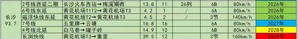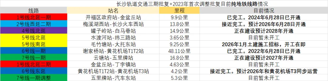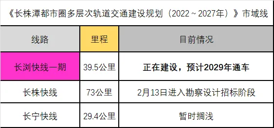 除了纯地铁,当然还有市域线方面,在2022年12月批复《长株潭都市圈多层次轨道交通建设规划(2022~2027年)》中三条市域线。在建和未建的明细如下。