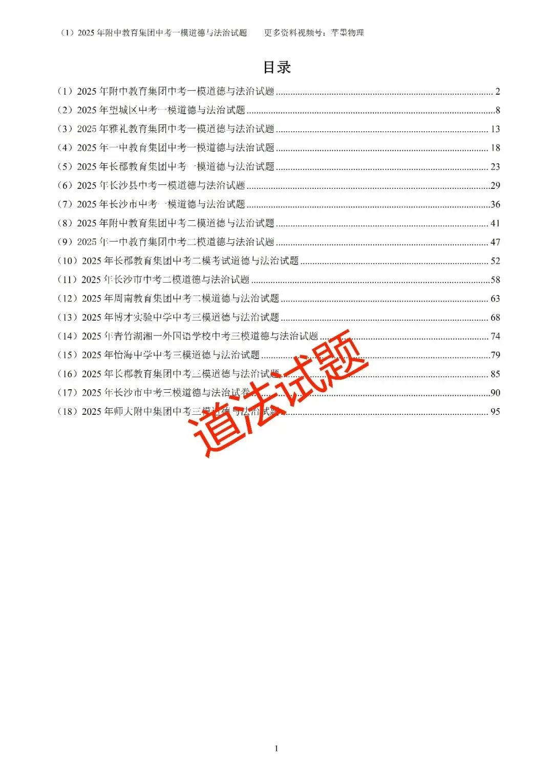 语文、数学、英语、物理、化学、历史、道法七科均有
