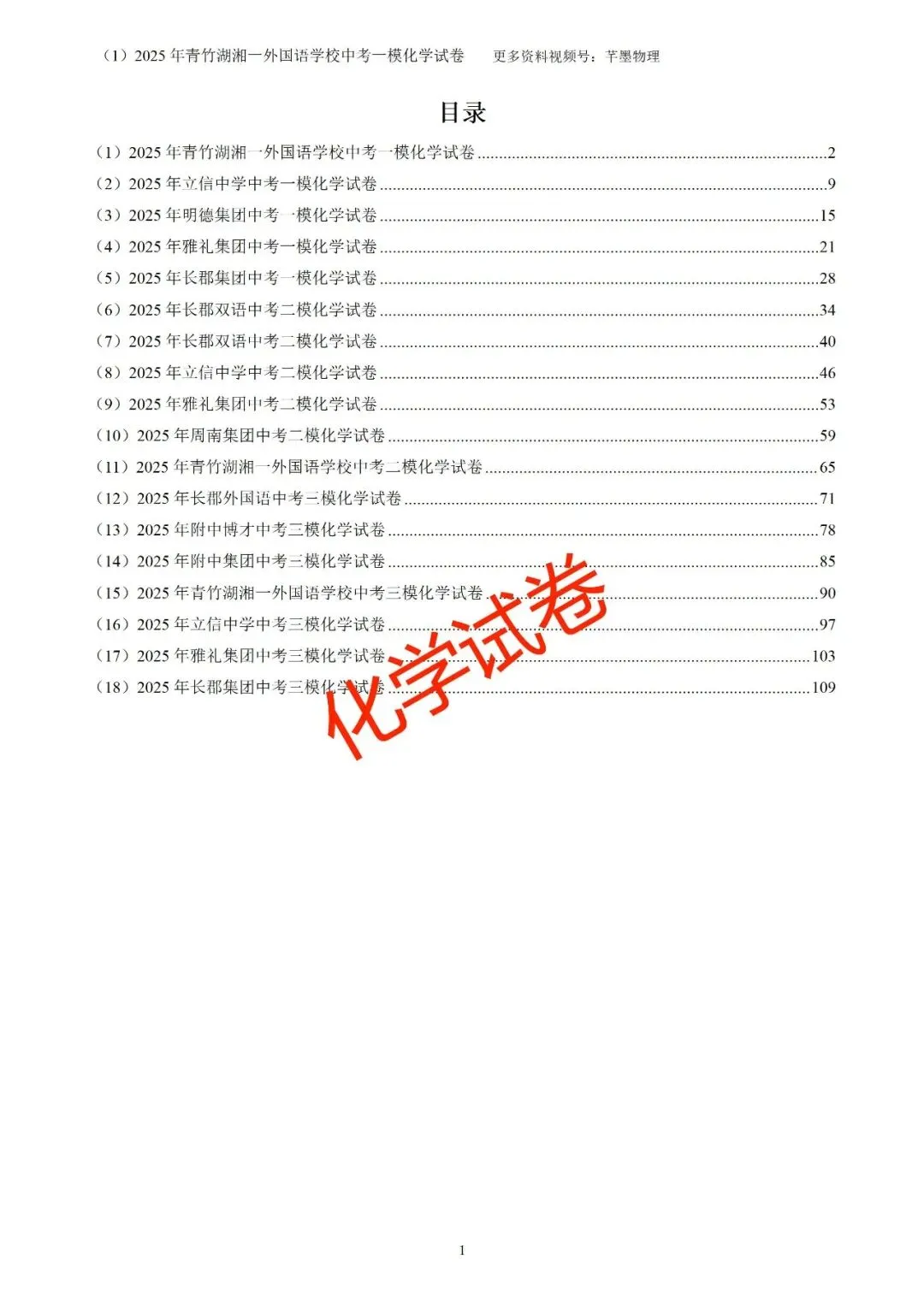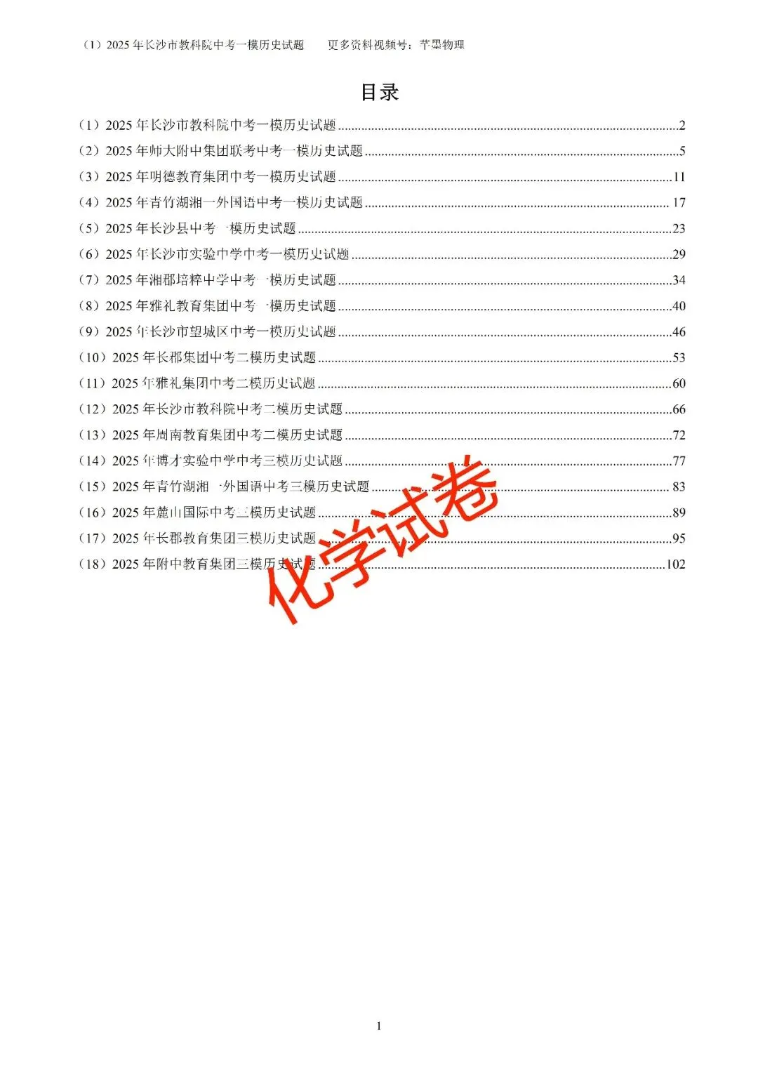 长沙名校初三中考模拟卷集(七科全)