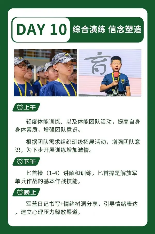 入营方式:开营当天由家长自行接送学员到营地集合