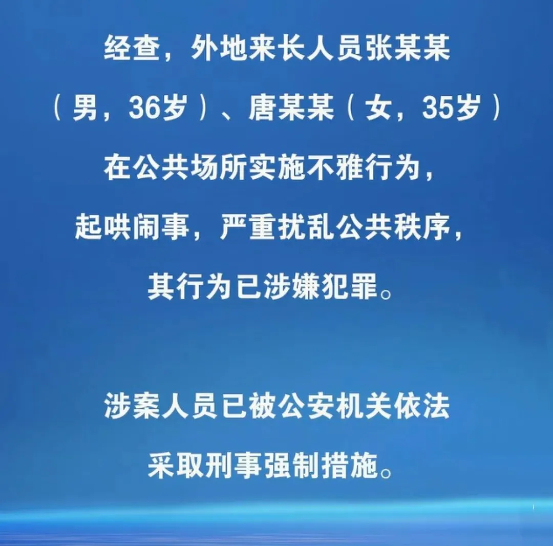 明明白白说了,在公共场所公然实施不雅行为、起哄闹事,严重扰乱公共秩序,已经涉嫌犯罪了。