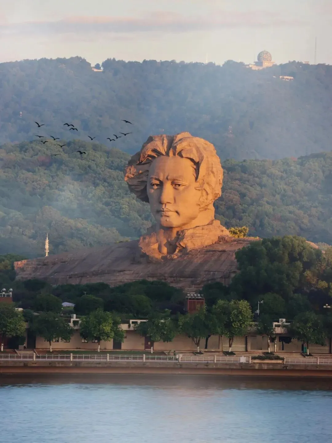 湘江北去,岳麓如黛,身后是繁华的长沙城。