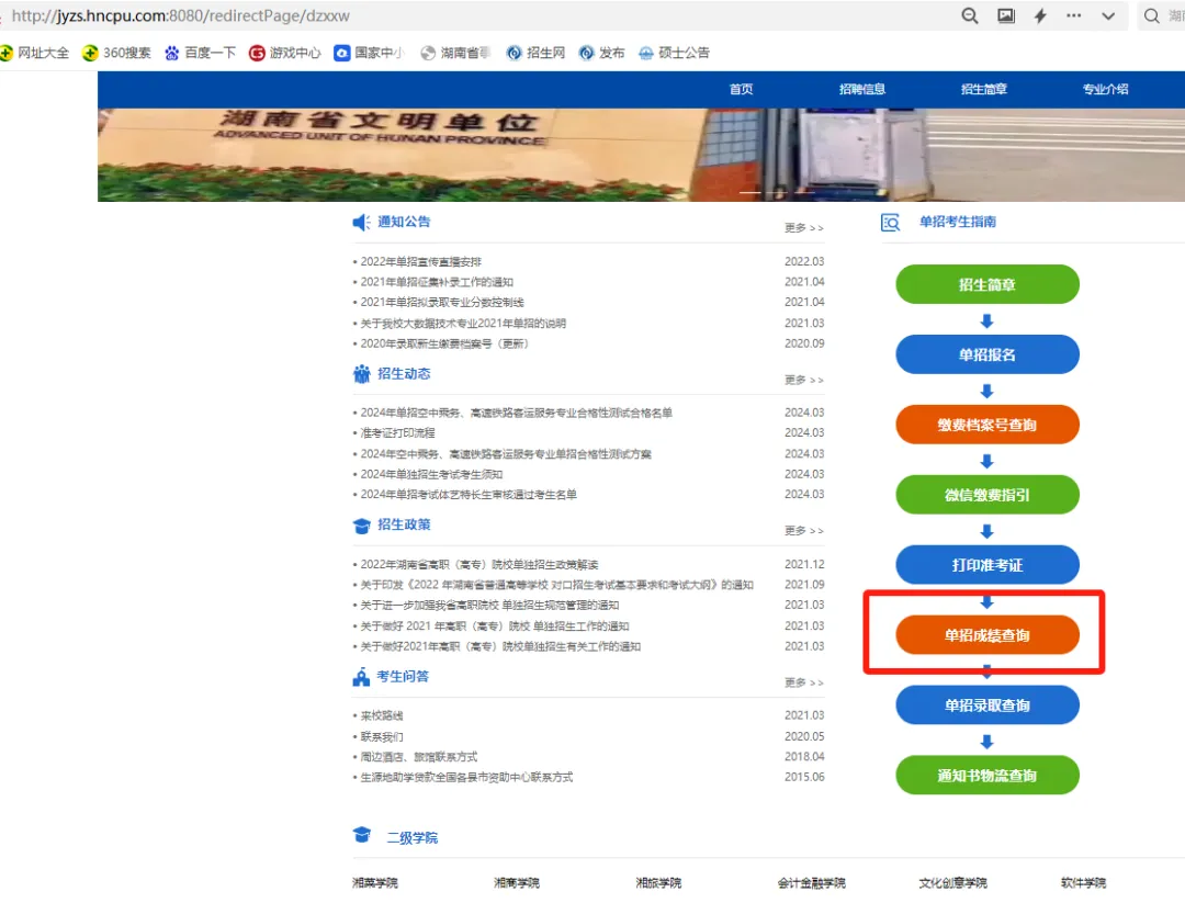 进入我校“单招信息网”(http://jyzs.hncpu.com:8080/redirectPage/dzxxw)