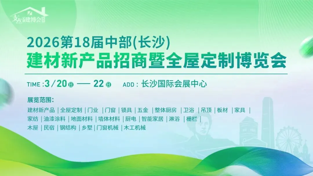 3月20日至22日,2026第18届中部(长沙)建材新产品招商暨全屋定制博览会(以下简称“长沙建博会”)将在长沙国际会展中心启幕。