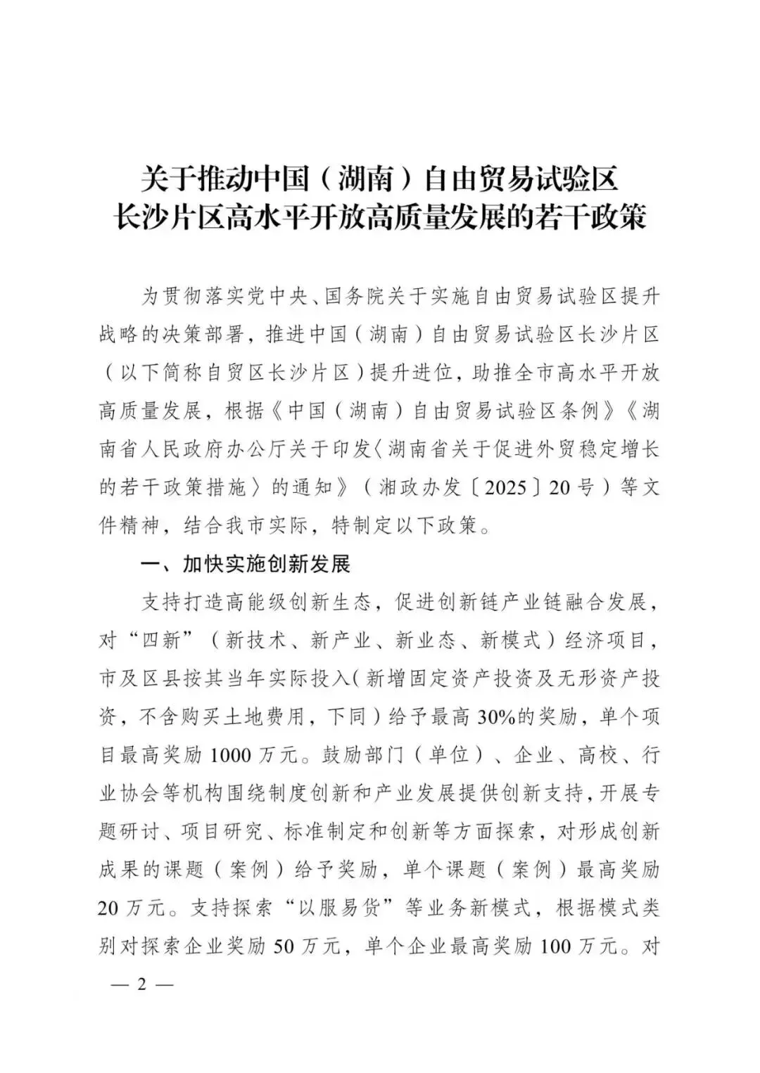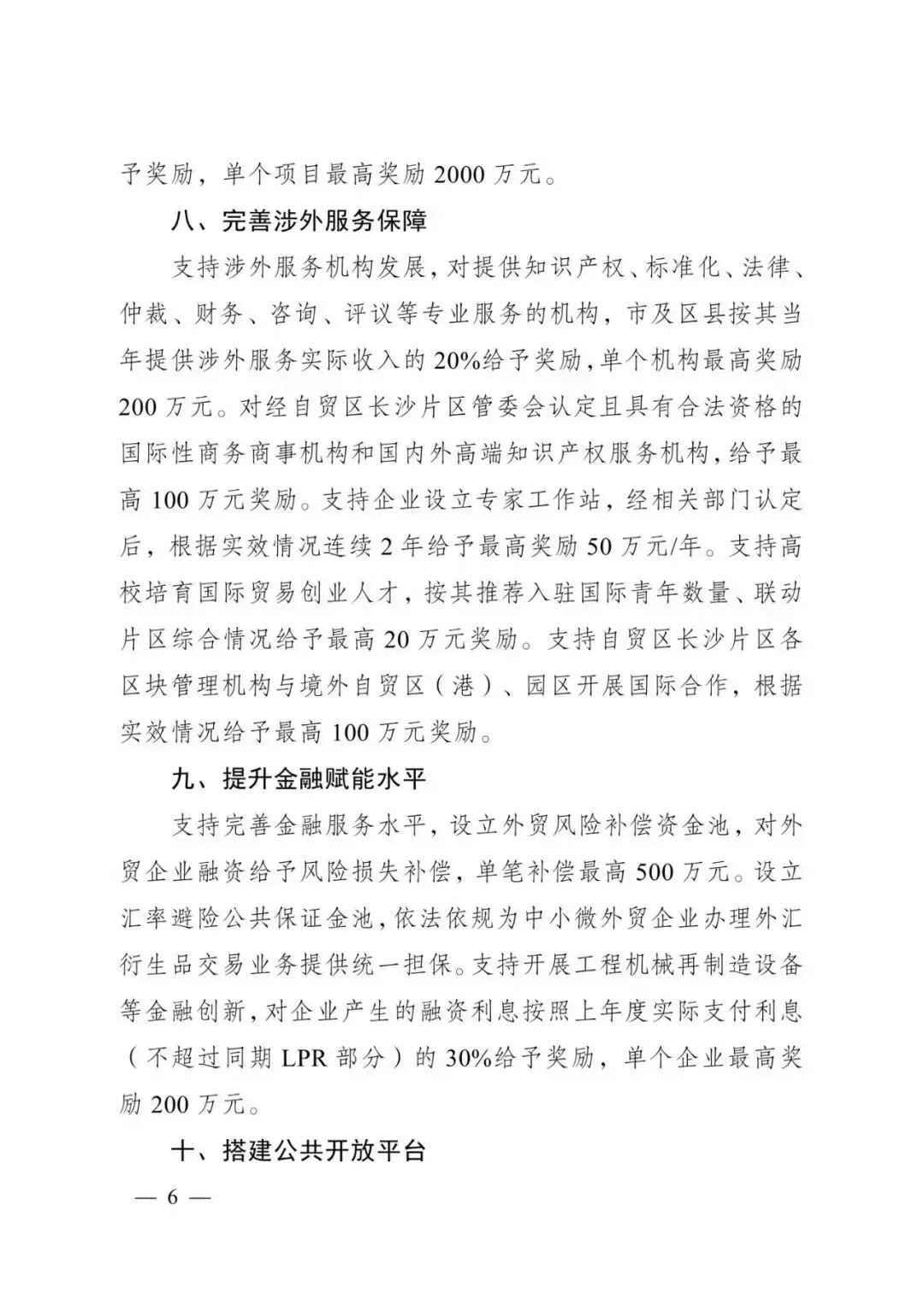 对经自贸区长沙片区管委会认定且具有合法资格的国际性商务商事机构和国内外高端知识产权服务机构,给予最高 100万元奖励。
