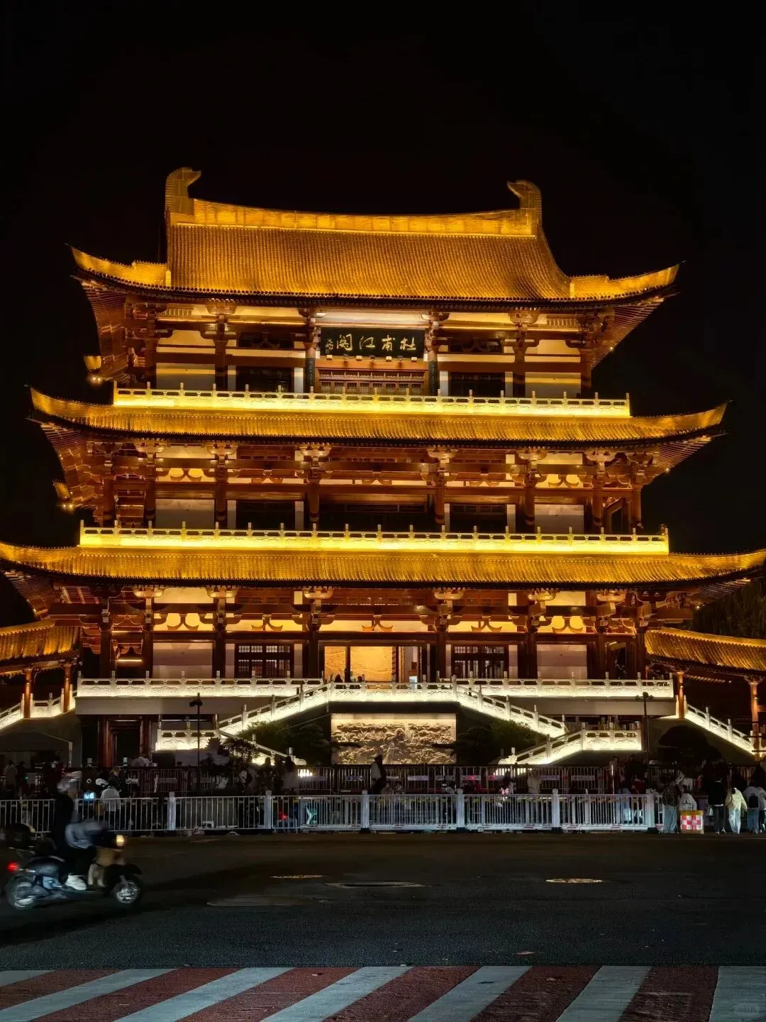 与橘子洲隔江相望的标志性建筑,是观赏湘江夜景的绝佳点位。周三、周五、周六晚间有震撼灯光秀,江阁与江面光影交相辉映,夜景拍摄效果拉满。
