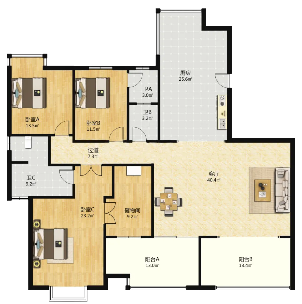 户型:3房2厅3卫