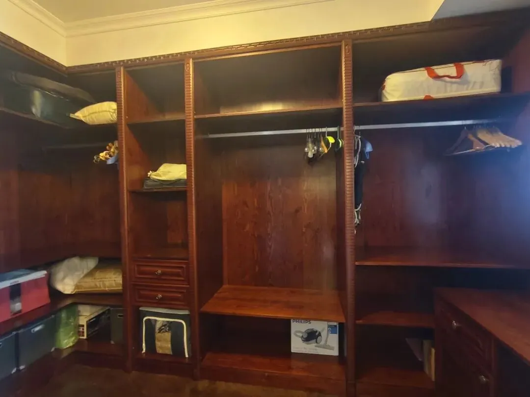● 衣帽间:定制实木衣柜,分区明确(挂衣区、抽屉、层板、收纳盒),满足衣物、杂物分类存储。