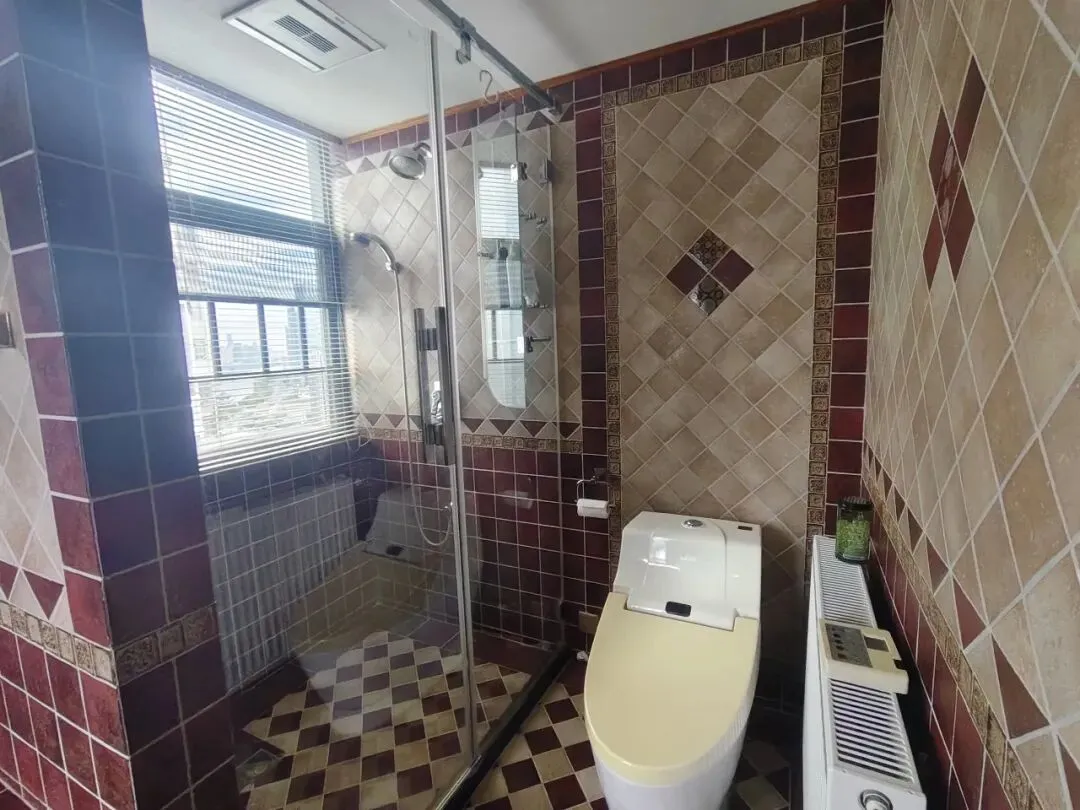 次卧是温馨实用的欧式风格空间,以大床、电视与独立卫浴满足居住需求。房间铺木地板、贴花纹壁纸,搭配复古床头与窗帘,营造柔和氛围;独立卫生间采用暖调瓷砖,设洗手台与蹲便器,干湿分明,兼顾舒适与便捷,整体空间紧凑却功能齐全,适合作为客房或儿童房。