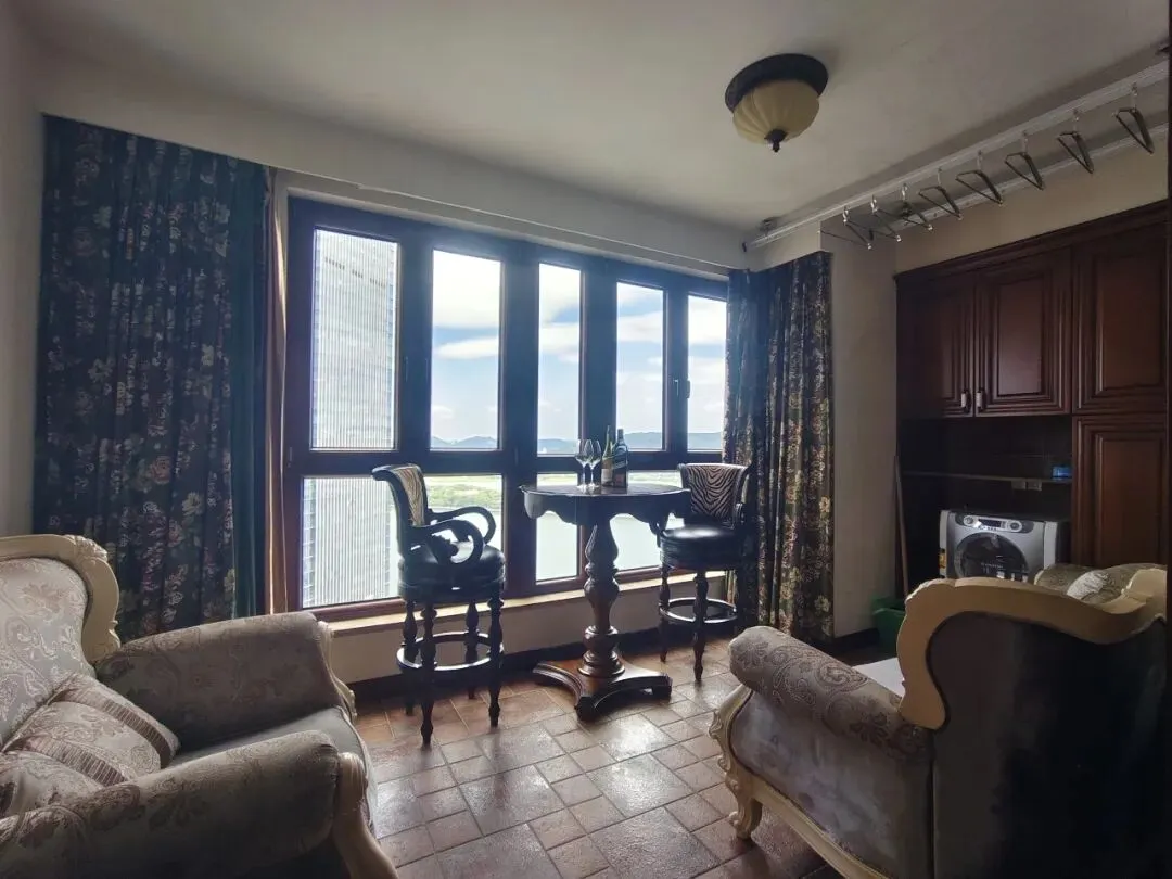 ● 采光观景:大面落地窗,窗外江景、山景、城市建筑群清晰可见,光线充足。