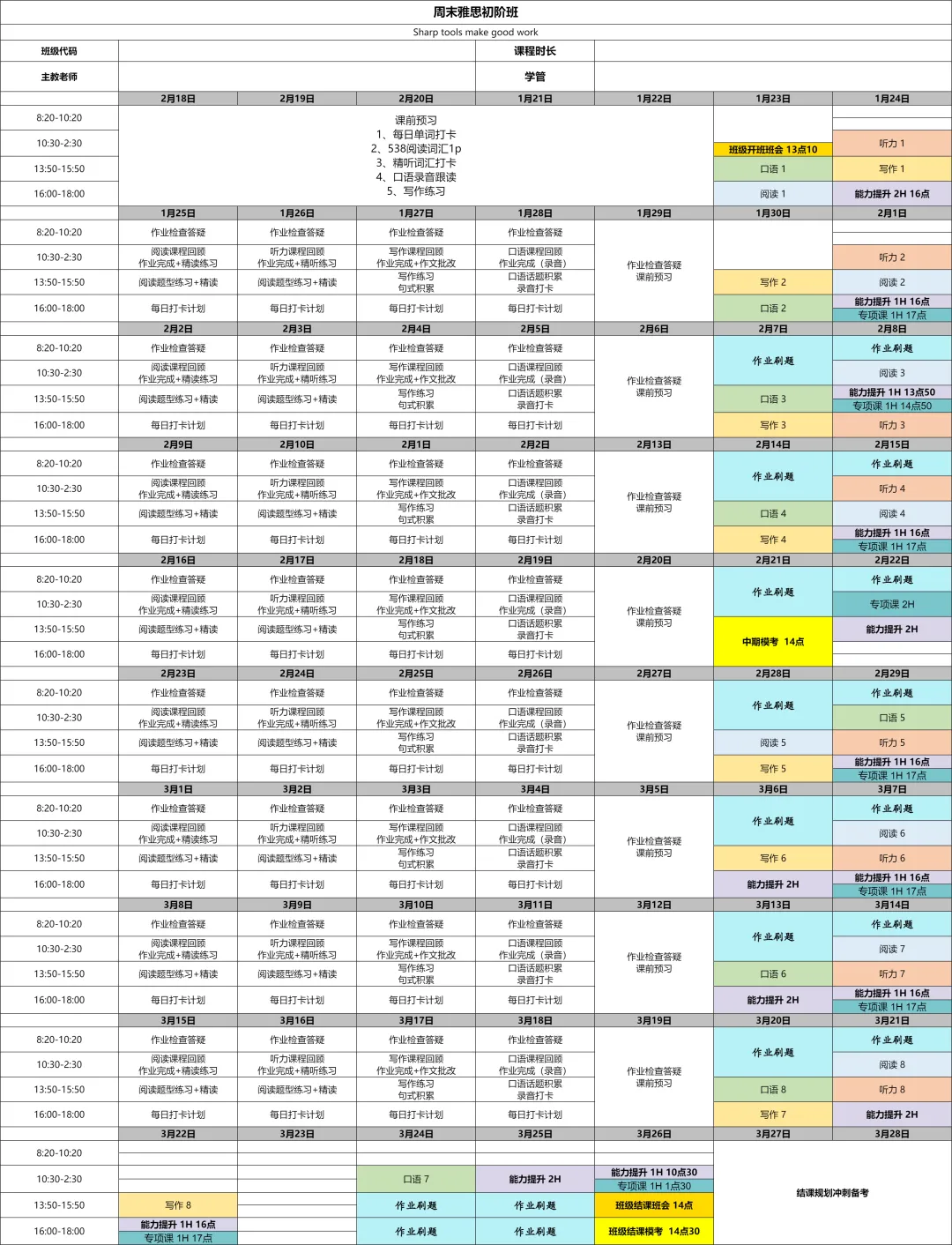 ✅周末班:周末2-3节正课+能力提升辅导,周中各科都安排有学习任务!