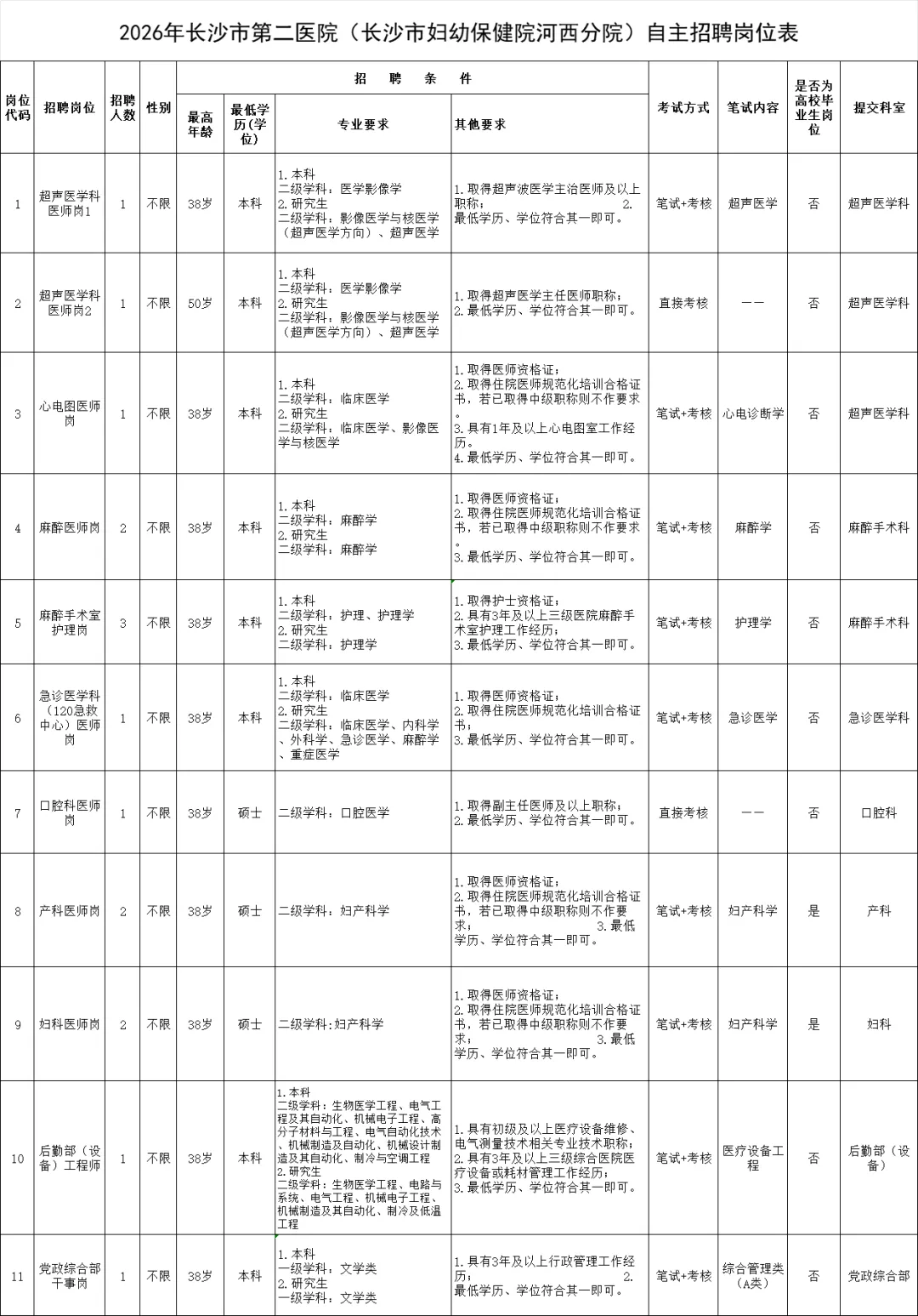 为满足长沙市第二医院(长沙市妇幼保健院河西分院)临床业务发展需要,经长沙市卫生健康委员会同意,长沙市第二医院(长沙市妇幼保健院河西分院)决定面向社会招聘劳务派遣工作人员16名。