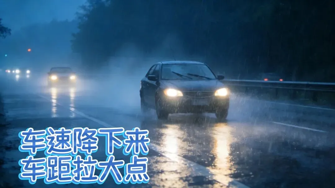 • 车速降下来,车距拉大点:雨天刹车距离变长,跟车要比平时远2-3倍,别猛打方向、急踩刹车,不然容易“漂移”~