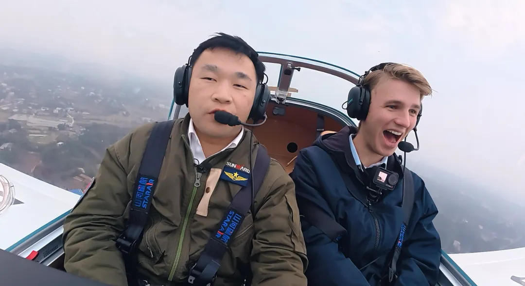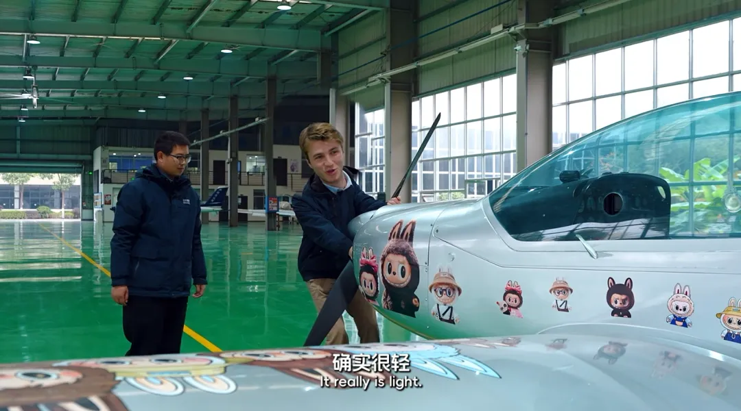 走进山河星航,蒙蒙面对的不是模拟器,而是一架真飞机——由山河星航团队自主研发的全国首款轻型运动类飞机,既是电视剧《玫瑰的故事》同款,也曾惊艳亮相湘超、苏超赛场上空。在专业飞行员陪同下,蒙蒙坐进驾驶舱,亲手握住操纵杆。第一次开飞机的体验,让他激动得语无伦次。