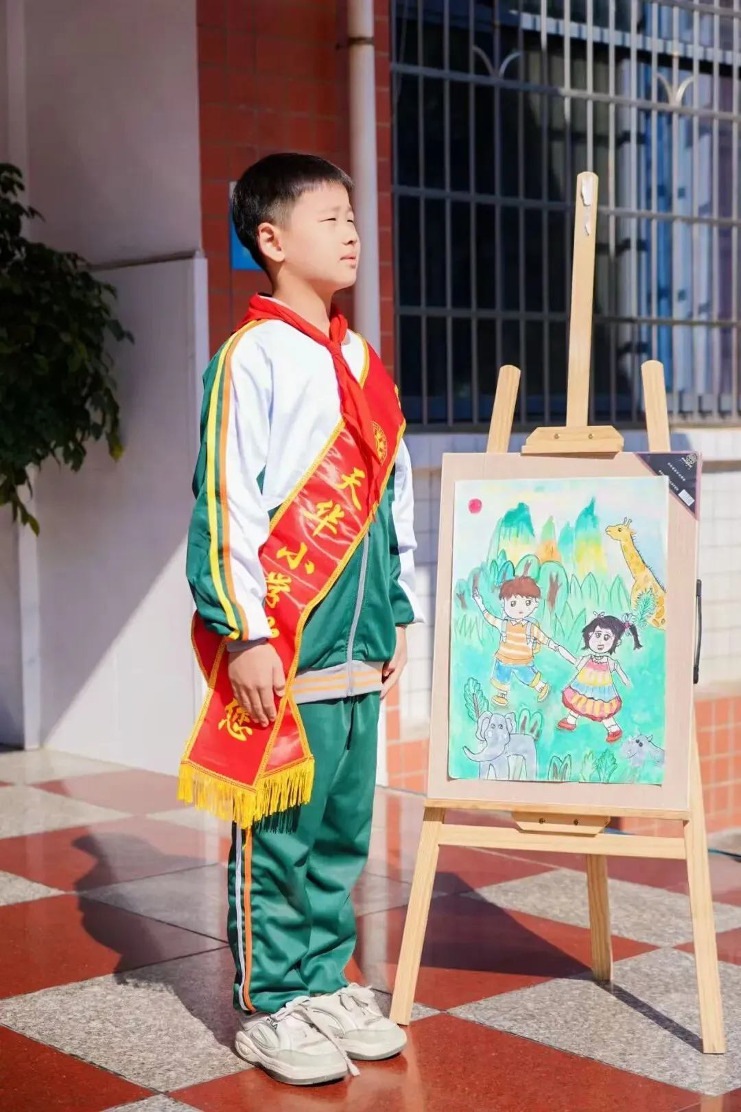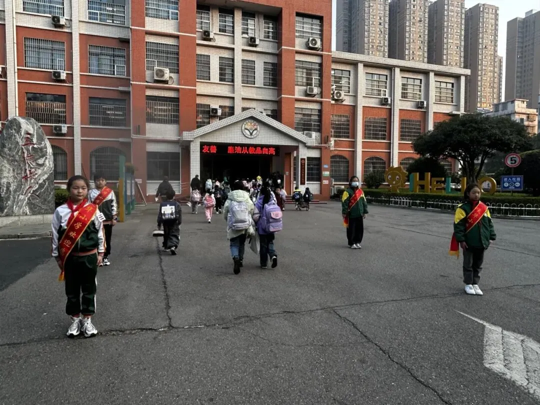 他们温馨提醒忘戴红领巾的同学,主动引导找不到教室的小朋友。他们用行动诠释着华善少年“友善”“担当”的品格。