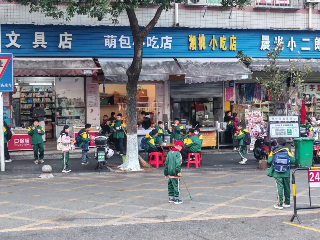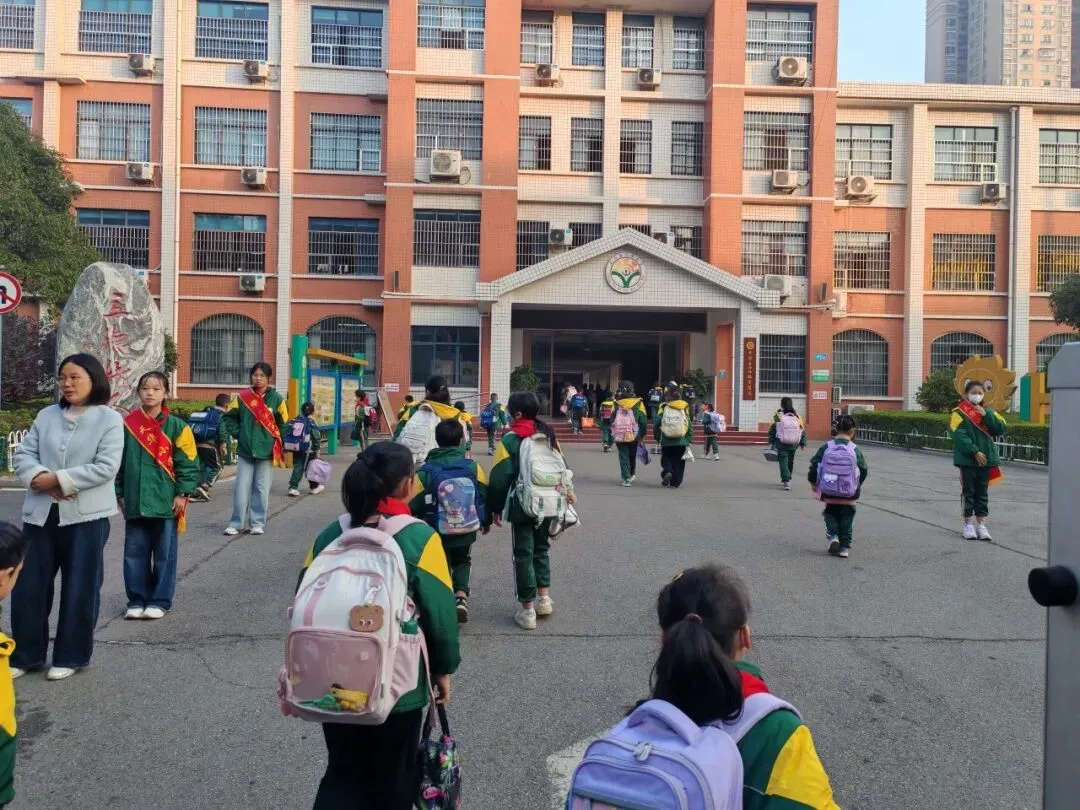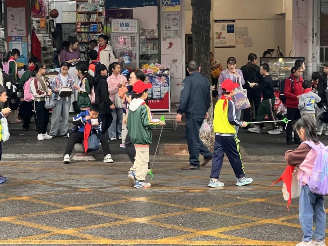 上学期,校门口有两道最美的风景线——每天清晨,一群孩子用微笑迎接每一位师生;另一群孩子则默默弯腰,清扫同学们入校时遗落的垃圾。