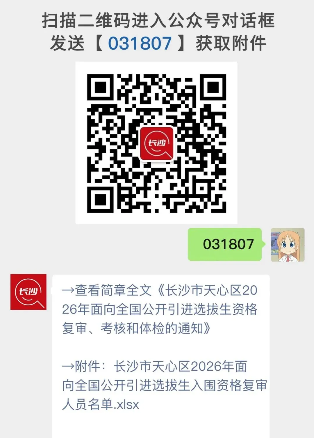 根据《长沙市天心区2026年面向全国公开引进选拔生公告》的有关安排,现将资格复审、考核和体检相关事宜通知如下: