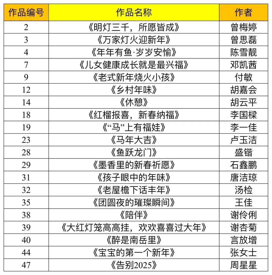 自2月11日(南方小年)启动以来,该活动受到了社会各界的广泛关注和积极参与,大赛组委会共收到投稿作品超1000幅,覆盖湖南省14个市州。经评委组精心筛选后,50幅紧扣“湘味‘兴’福年”主题的优秀作品进入最终评选环节。评选采用大众评选与专家评审相结合的方式。大众评选于3月3日至3月9日进行,反响热烈,广大网友踊跃为自己心仪的年味瞬间投票,总票数超10万。