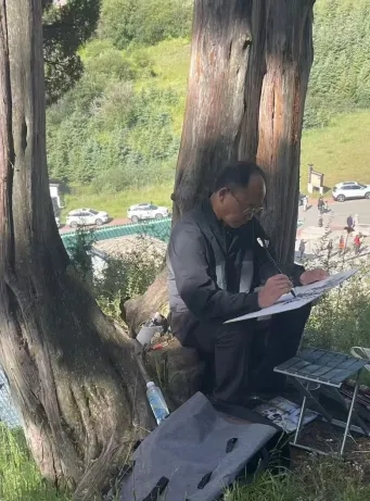 2024年8月甘南写生留影,后附写生作品四幅。