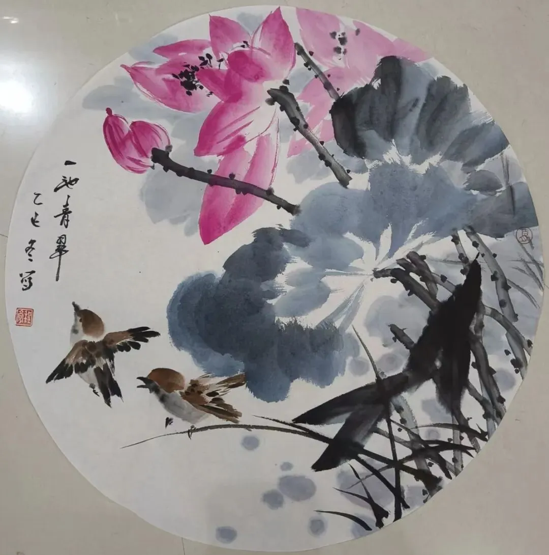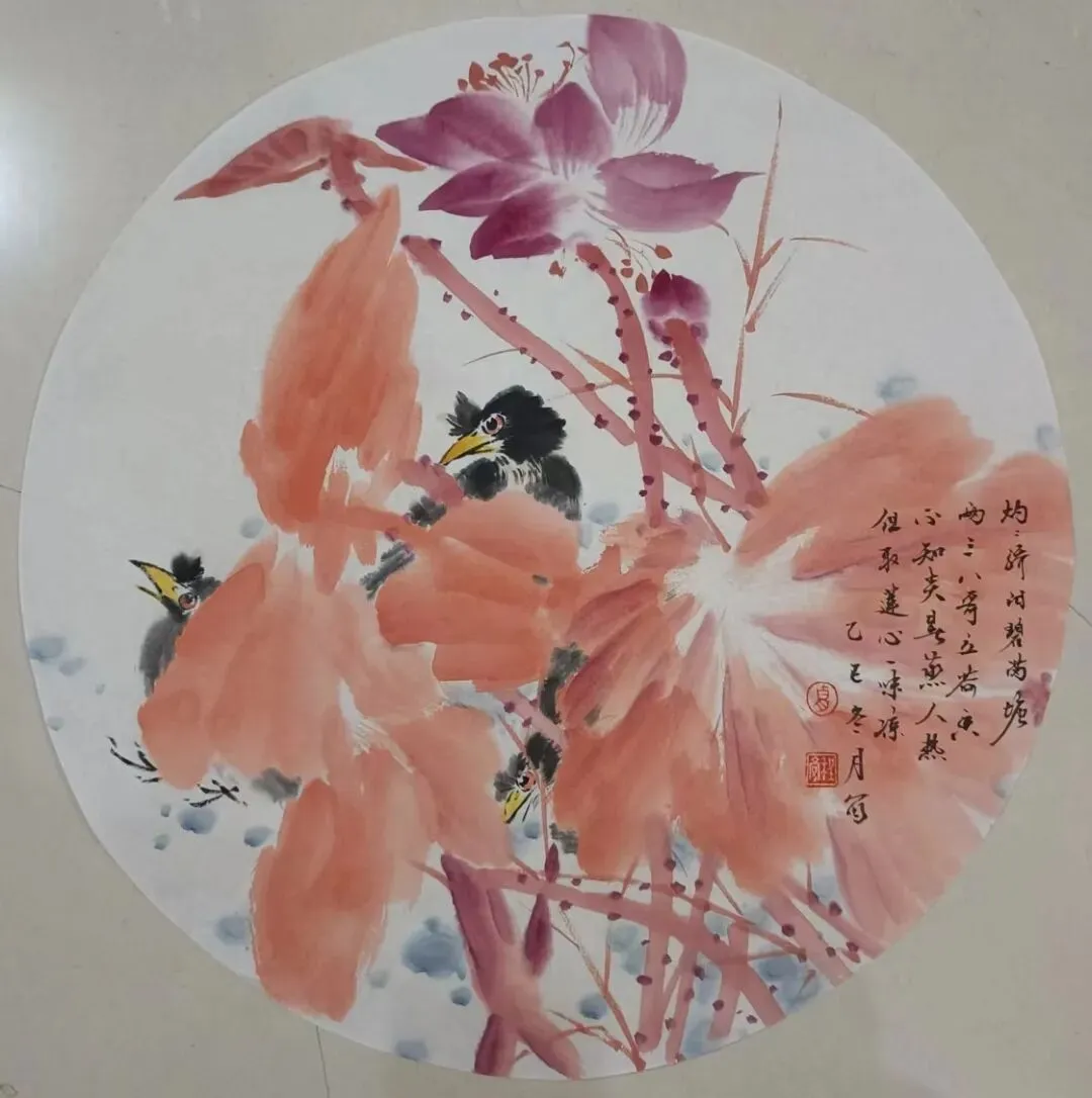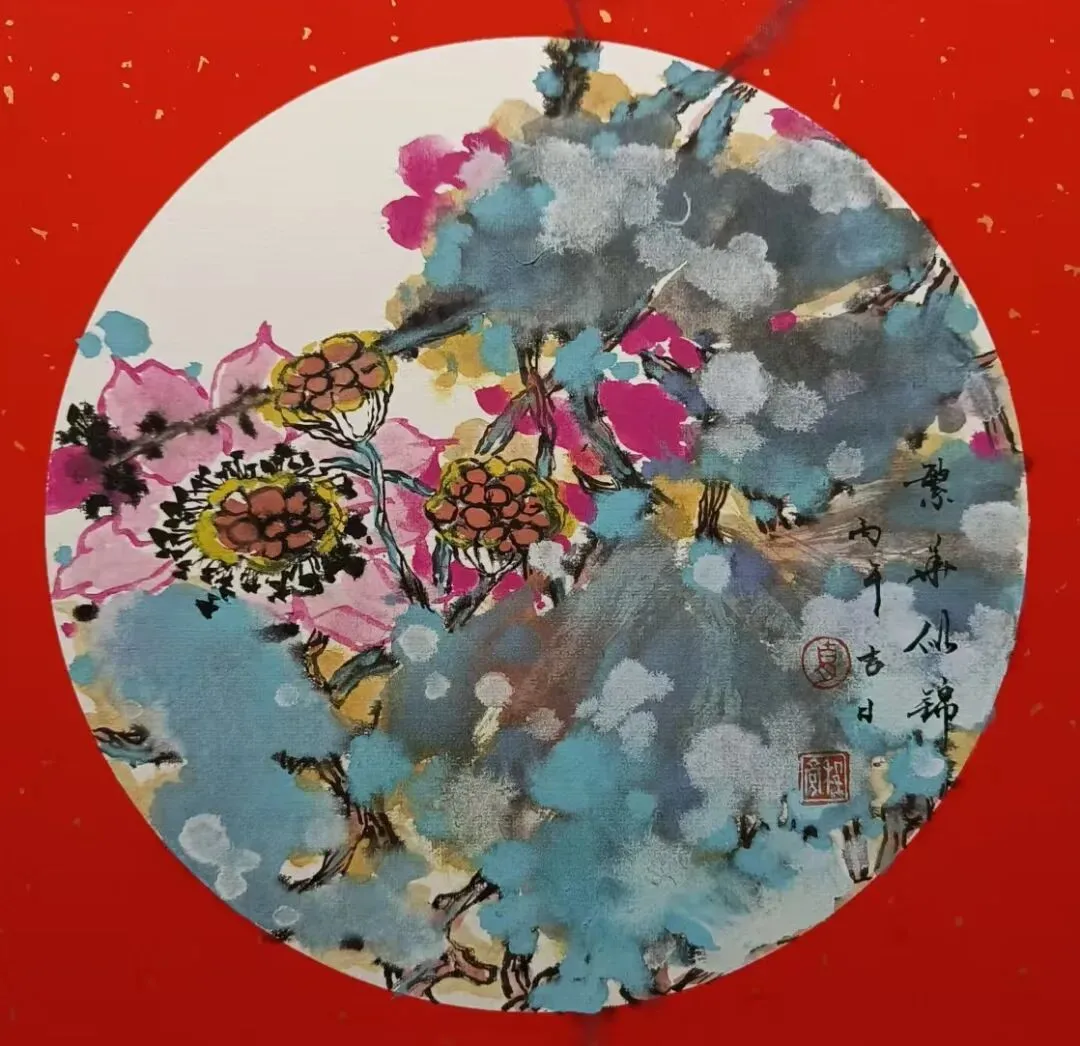 在传统与现代之间,雅与俗,形与神之间寻求花鸟画的当代生机,作品采取没骨与写意结合,色墨与水墨并重,以自然生机观照人生,以吉祥寓意温暖世情,力求使传统花鸟画在当代生活中焕发出鲜活的生命力。