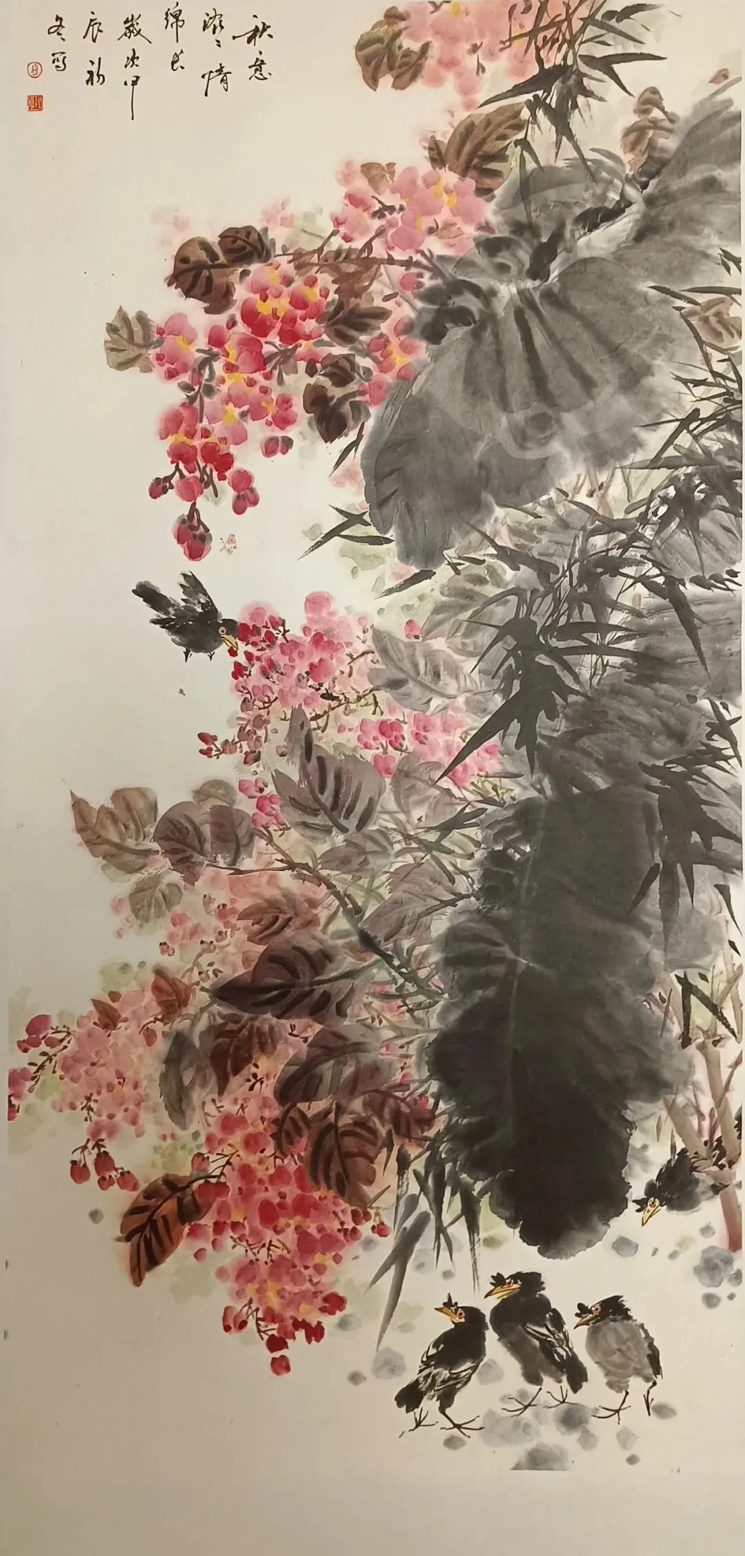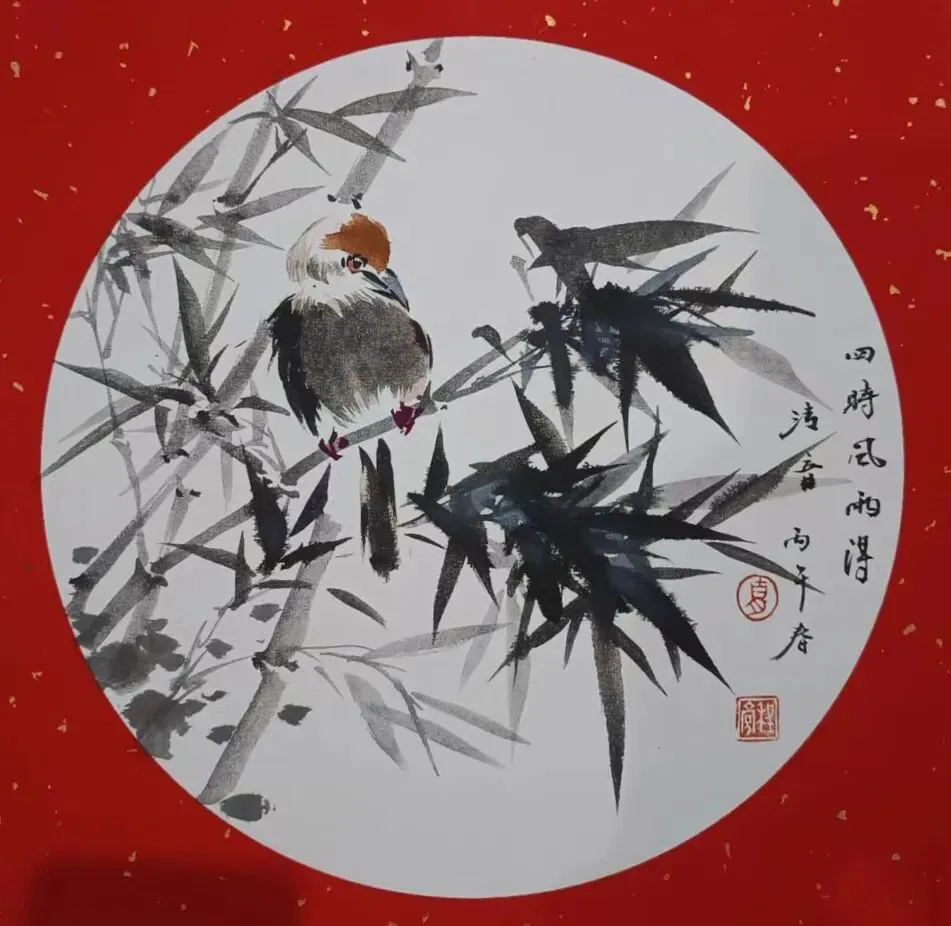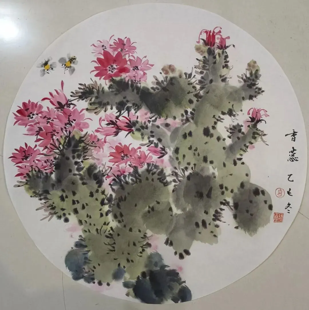 在传统与现代之间,雅与俗,形与神之间寻求花鸟画的当代生机,作品采取没骨与写意结合,色墨与水墨并重,以自然生机观照人生,以吉祥寓意温暖世情,力求使传统花鸟画在当代生活中焕发出鲜活的生命力。