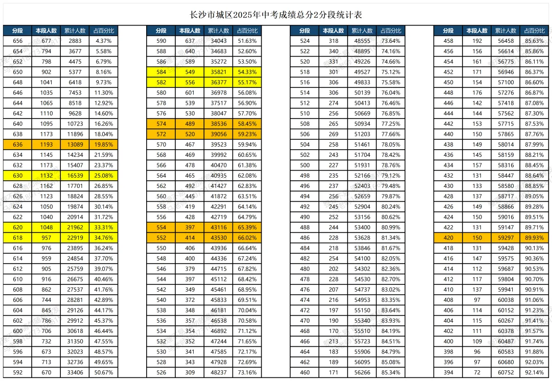 1. 避免“高分低录”“滑档”:长沙中考1分之差可能落后数百人,二分段表能看清分数密集区,帮你避开志愿扎堆,精准匹配目标校;