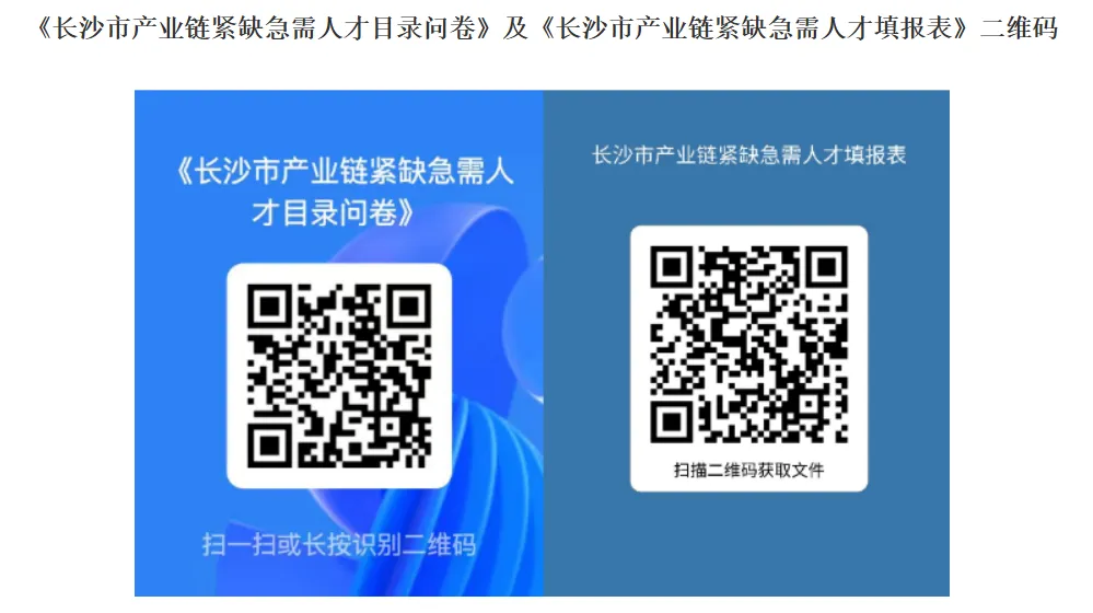 附件:《长沙市产业链紧缺急需人才目录问卷》及《长沙市产业链紧缺急需人才填报表》二维码