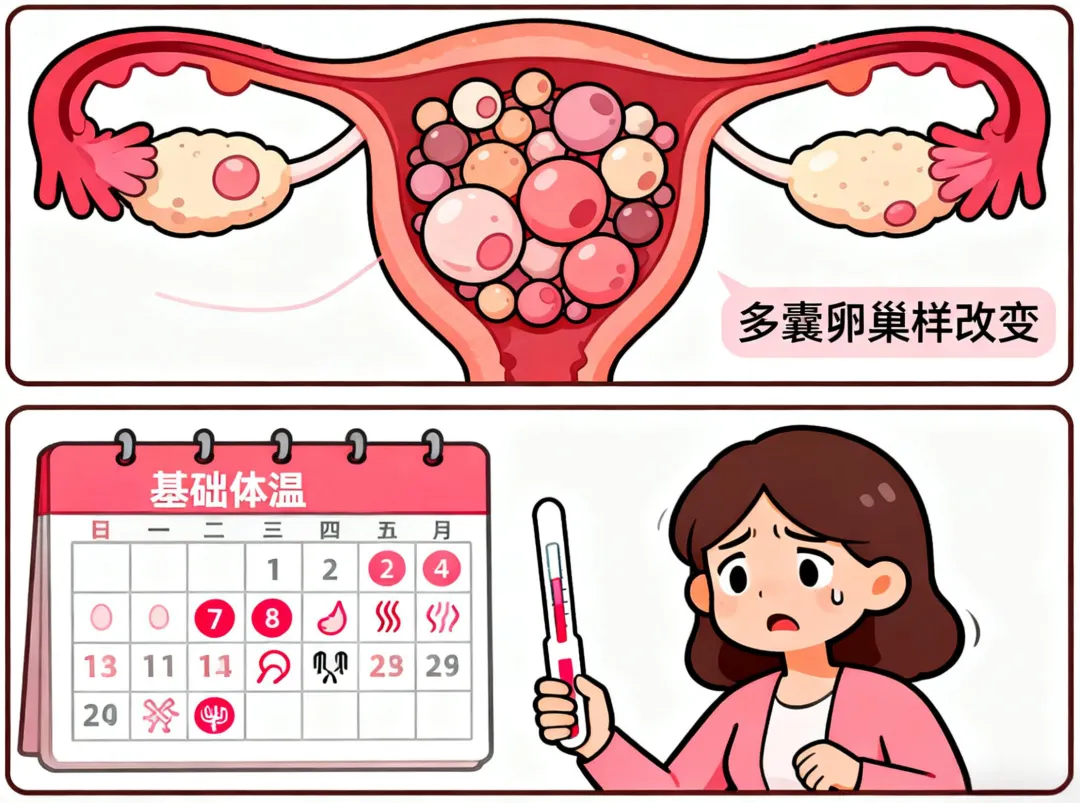 约70%的PCOS患者会出现月经周期延长或缩短,甚至闭经。有患者形容:“月经要么提前半个月报到,要么推迟一个月才来,完全没规律。”这种紊乱可能与体内雄激素水平异常有关。