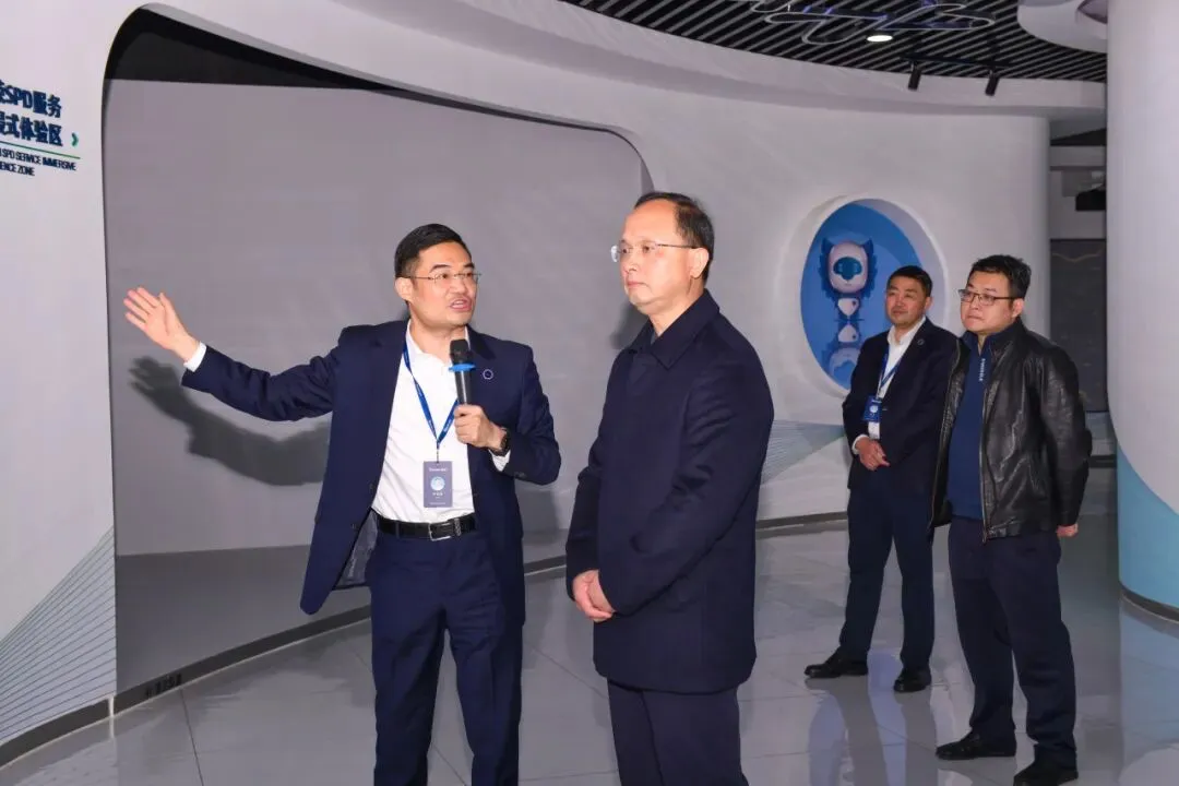 在德荣数智科技馆,调研组一行实地察看了产业园基地建设,听取了德荣医疗董事长郭德斌关于企业向数智医药供应链服务体系转型的汇报,详细了解当前商业模式、市场布局及战略规划,重点关注药品耗材SPD一体化管理这一核心业务。
