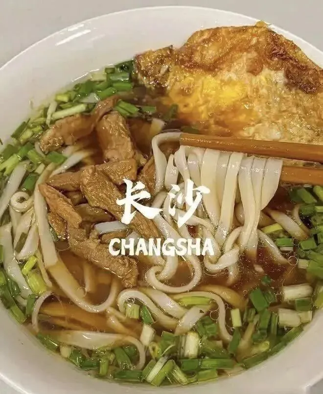 长沙人的一天,几乎是从一碗热气腾腾的米粉开始的,长沙米粉以扁宽顺滑、汤鲜码足著称,是深入骨髓的日常味道。米粉选用洞庭湖的早稻米,经过“三漂三沉”的传统工艺制作,粉条扁而宽,口感软糯却不失韧性,久煮不烂。汤头是米粉的灵魂,大骨、老鸡、香料慢炖数小时,熬出奶白醇厚或清亮鲜香的汤底;码子种类丰富,肉丝、排骨、牛肉、杂酱等,现炒现盖,新鲜入味。