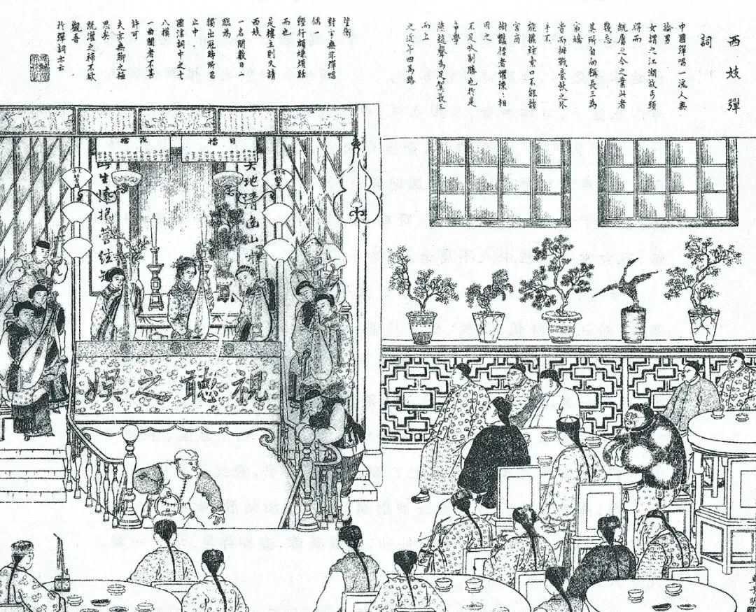 清末《点石斋画报》载“西妓弹词”图