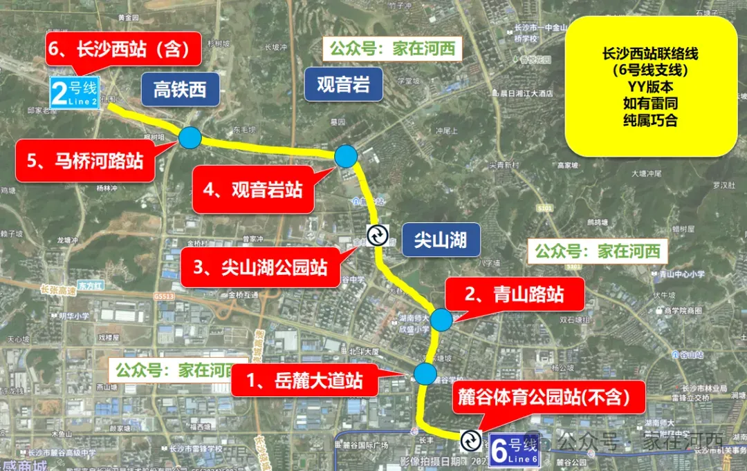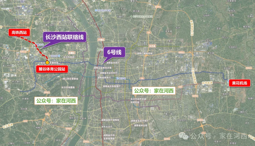 长沙西站联络线(6号线支线)起于长沙西站,止于麓谷体育公园站(不含),线路全长9.8