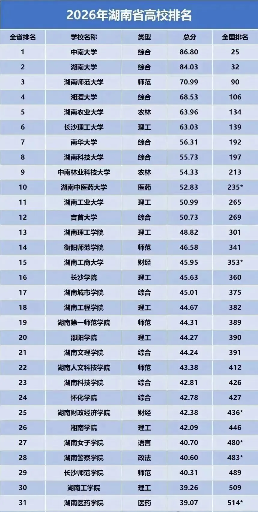 最新发布的2026年湖南高校排名,如果只看名次就亏大了,榜单放文末了。