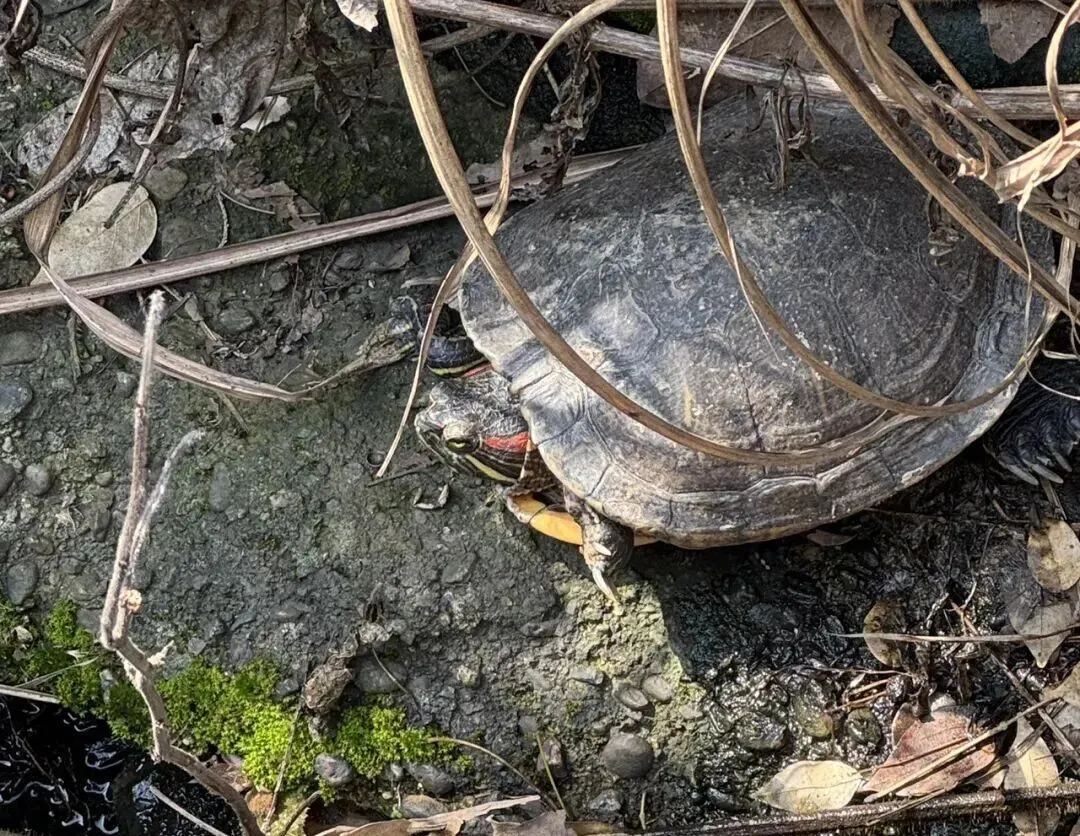 停好车步行,在寺庙旁边的小沟渠还看到了一只乌龟🐢,乌龟上面的壳比较老旧,估计这只乌龟上了一点年纪。