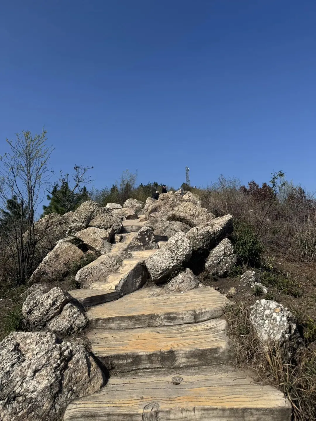 穿过这段石头路就到了山顶的观景台。