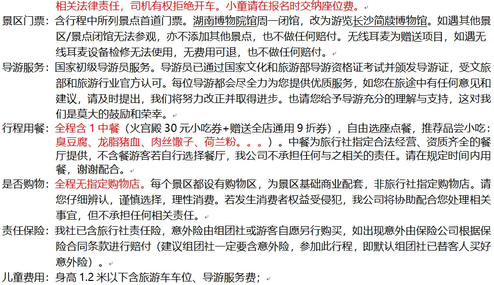 🍀费用包含:1天旅游车费+湖南博物馆、岳麓山、橘子洲门票预约+中餐(火宫殿30元小吃券+全店通用9折优惠券)+导游服务+保险