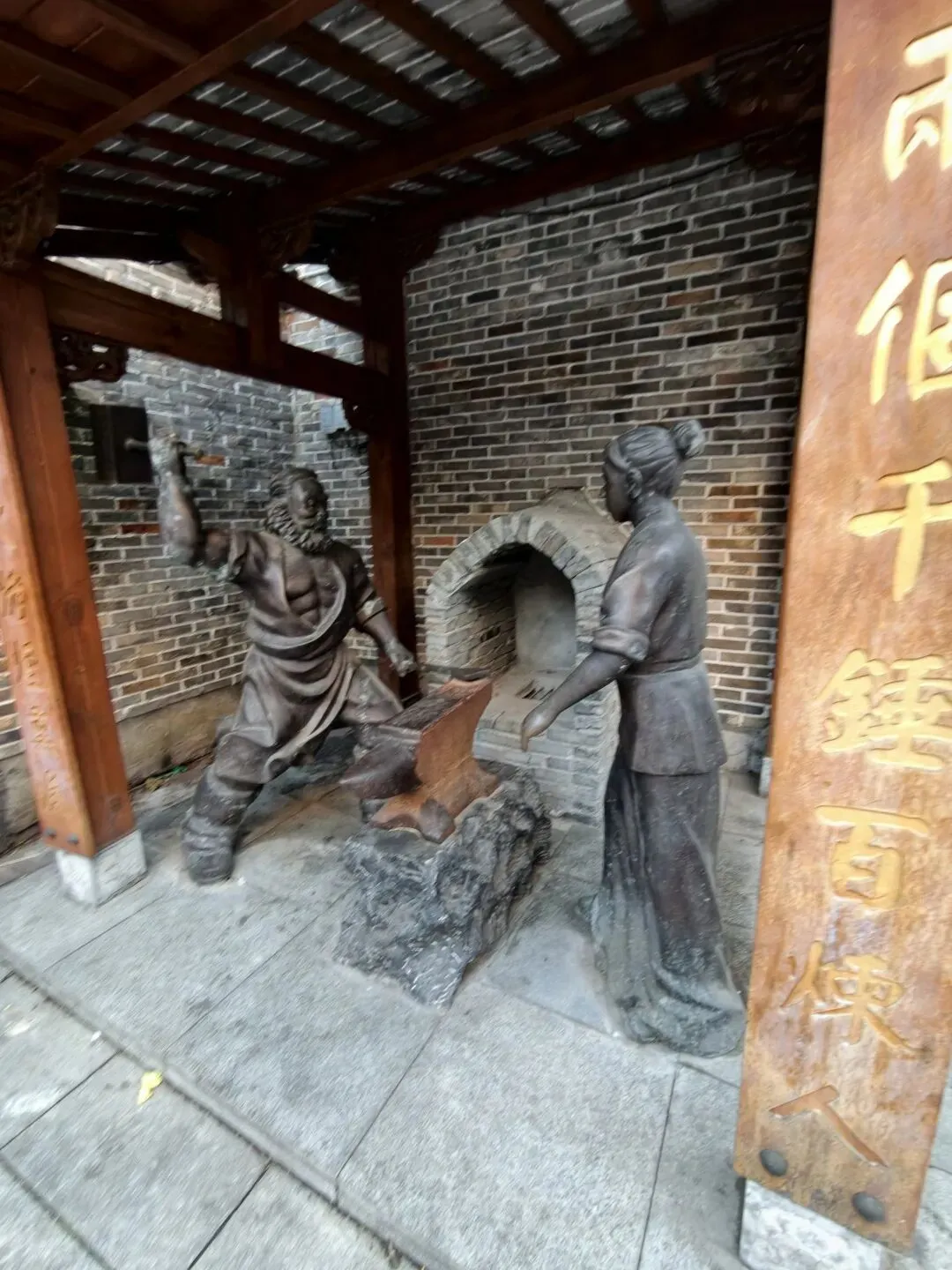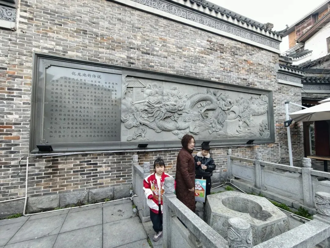 今天在巷子中段的转弯处,有由化龙井、铁匠铺和传说浮雕组成的微观园林。