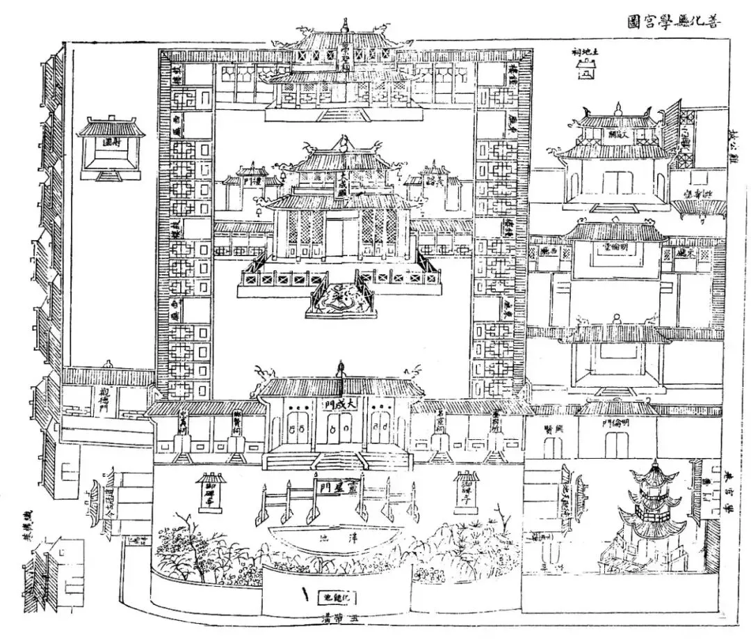 清光绪《善化县志》中绘有善化县学宫图,其规制与长沙府学宫如出一辙。